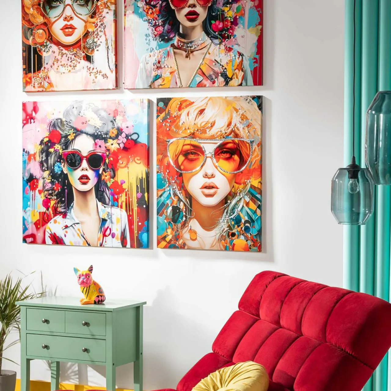 Lekki obraz na płótnie RETRO KOBIETA I o wymiarach 80×80 cm z łatwością zawiesisz na ścianie w salonie, przedpokoju lub w sypialni.