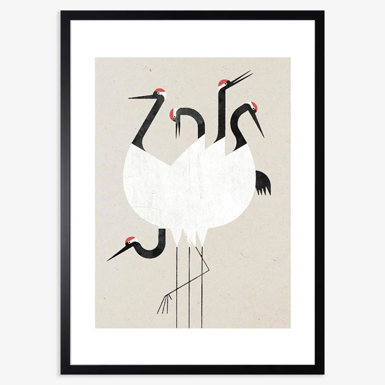 Grafika przedstawia żurawie – czerwone akcenty przyciągną uwagę.