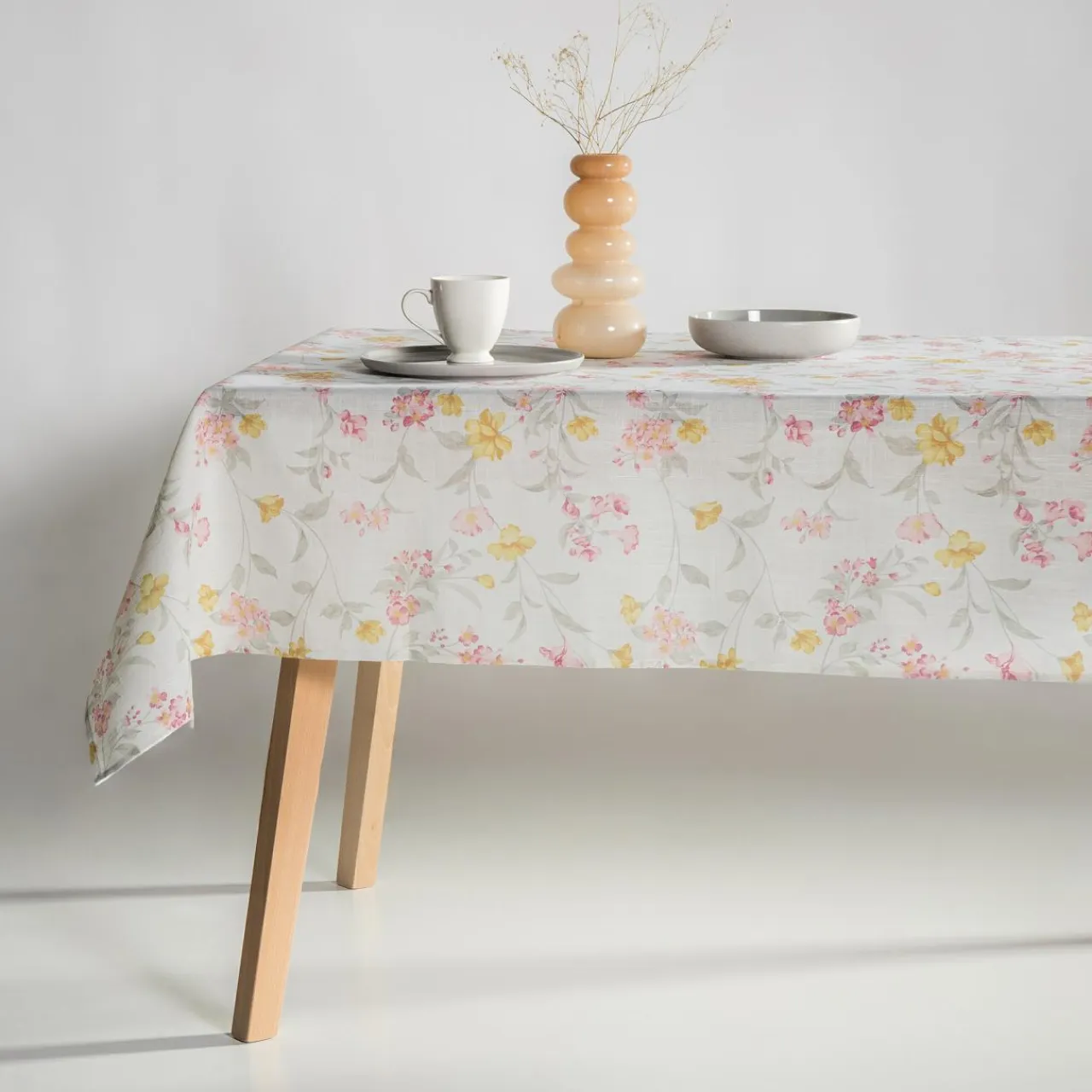 Szukasz subtelnych dekoracji do rustykalnej lub romantycznej jadalni? Biały obrus z kolekcji GARDENIC wyróżnia się roślinnym wzorem. Różowo-żółte kwiatki delikatnie ożywią przestrzeń i dodadzą wnętrzu uczucia świeżości.