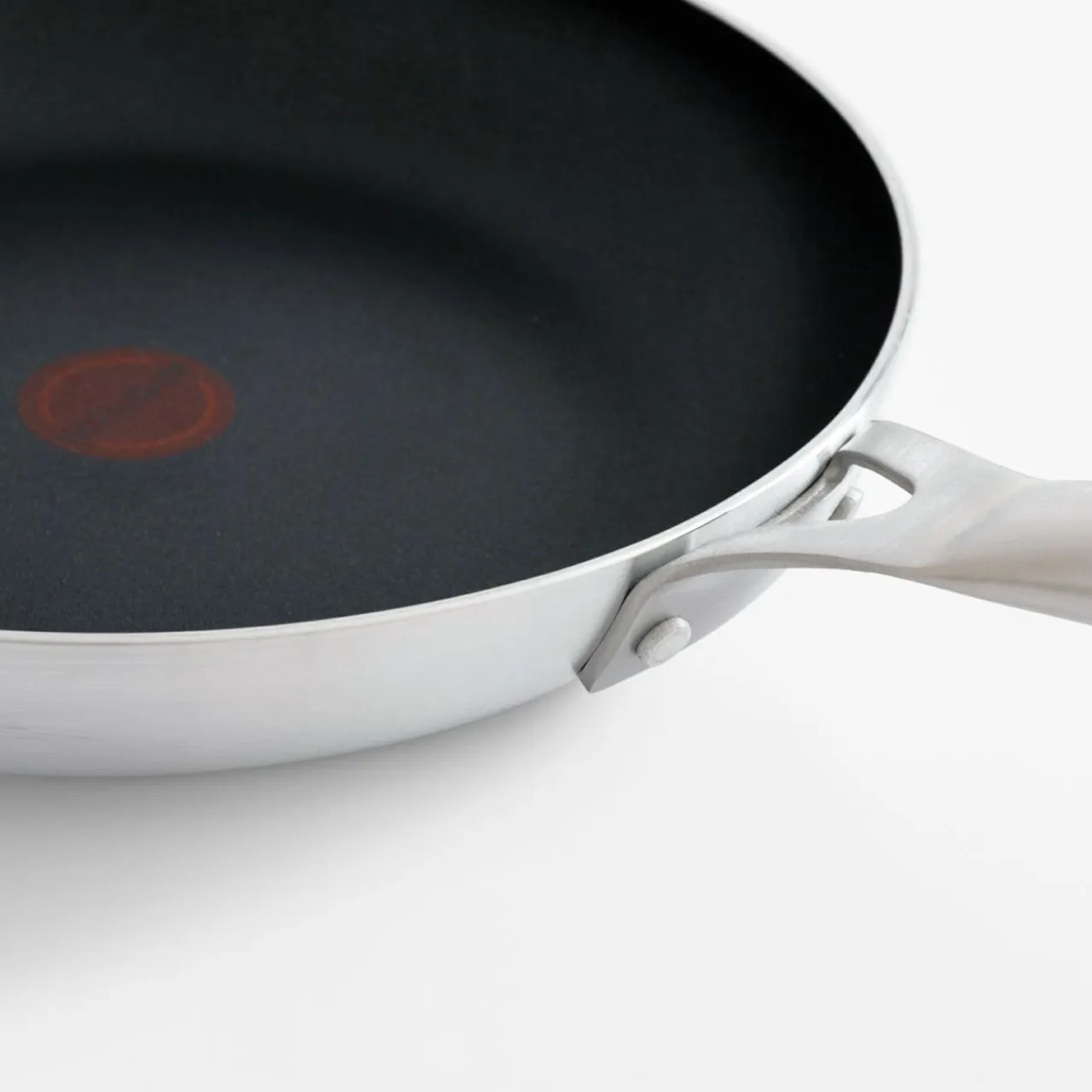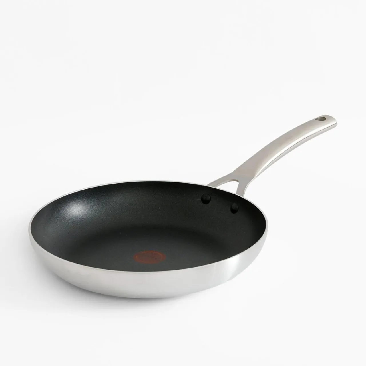 - Metaliczny połysk zewnętrznej strony nadaje patelni elegancki, nowoczesny wygląd.