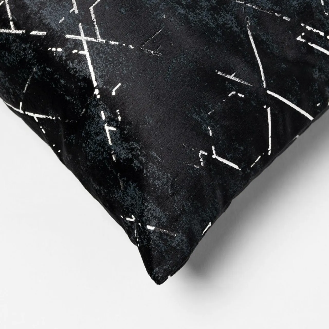 Dekoracyjna poduszka NORAH doda wnętrzu blasku. Srebrny, połyskujący wzór na czarnej poduszce przyciąga wzrok.