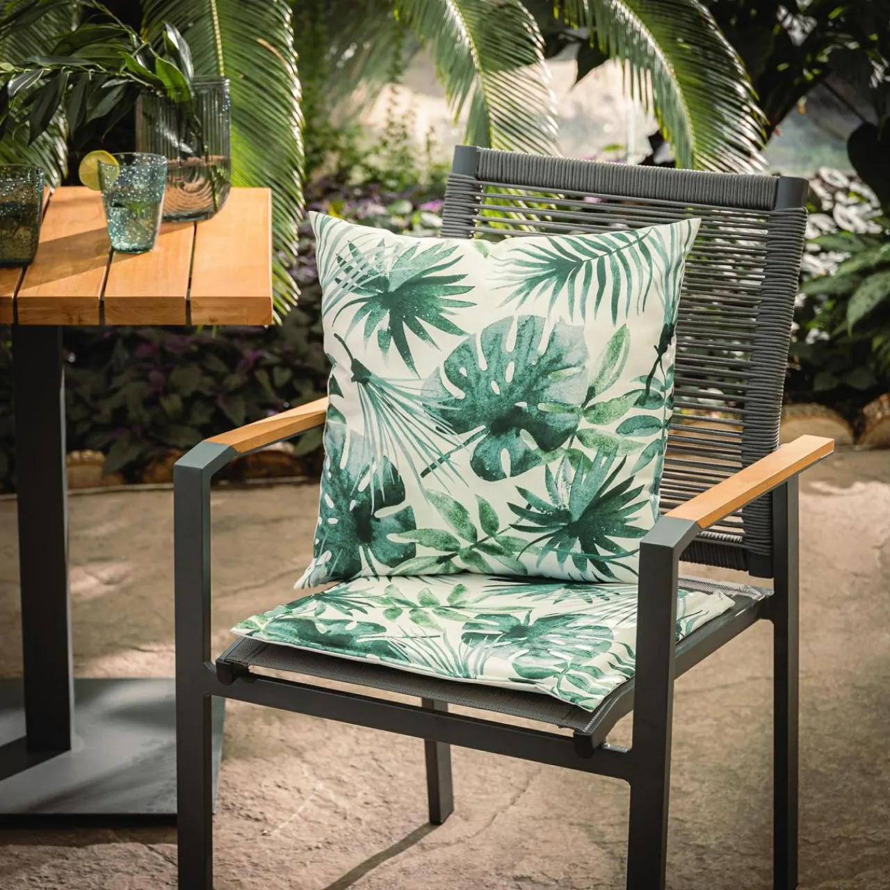 Poduszka dekoracyjna jest częścią kompletu – dodaj do niej poduszkę na krzesło oraz poduszkę na leżak i ciesz się wygodą!