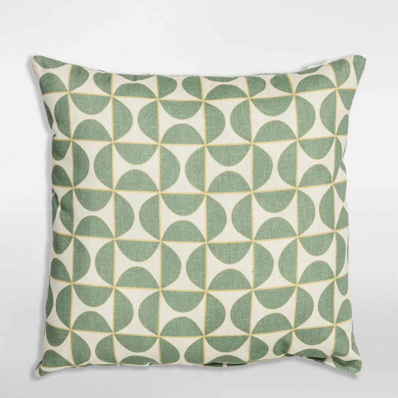 Kolekcja poduszek PALEO w geometryczne, kolorowe wzory uatrakcyjni wnętrze i przyciągnie wzrok. Zielone półkola tworzą dynamiczną kompozycję, która podkreśli modne aranżacje.