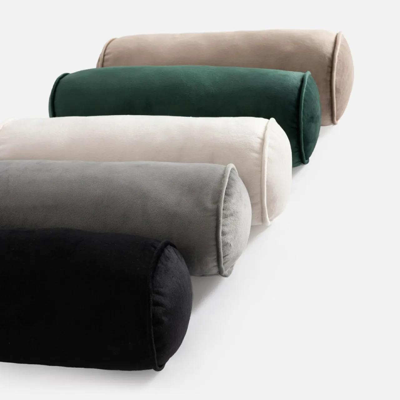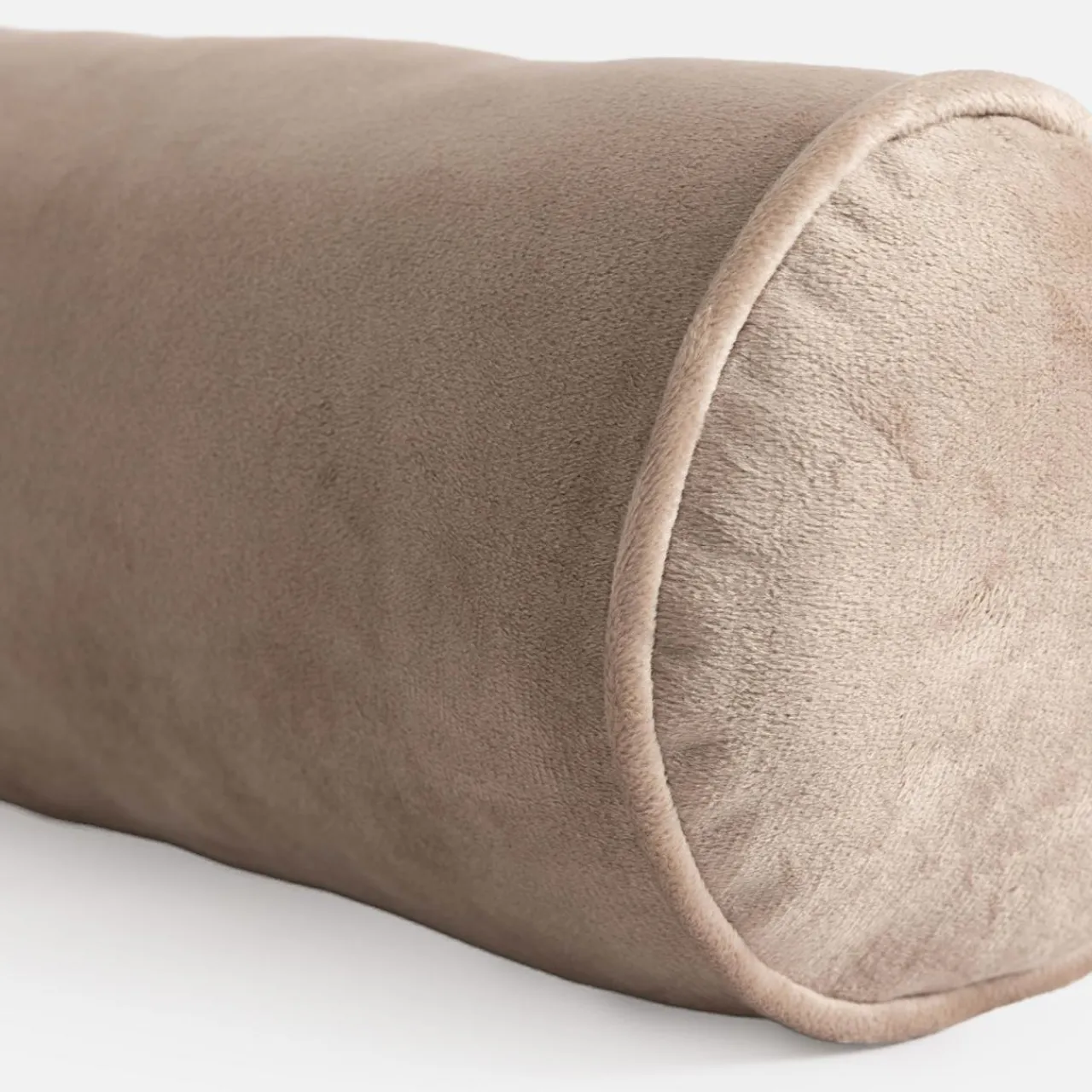 Dekoracyjny wałek z welurowego materiału jest miękki w dotyku.