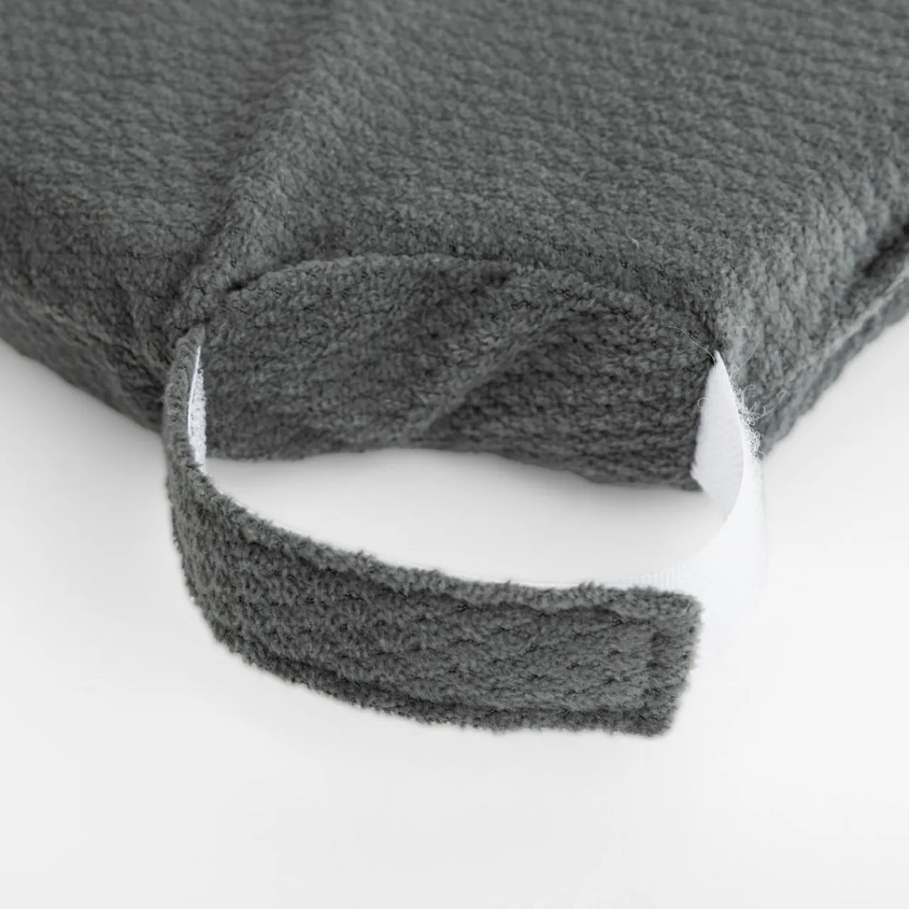 Z boku ma 2 rzepy, za pomogą których przeczepisz ją do oparcia krzesła.