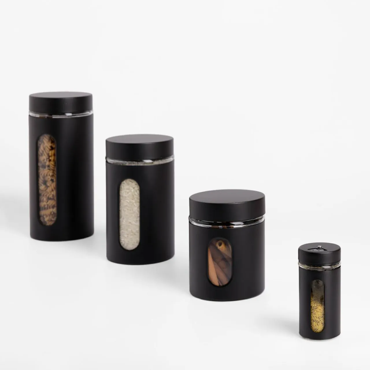 inny Pojemnik szklany z metalową pokrywką czarny 660 ml