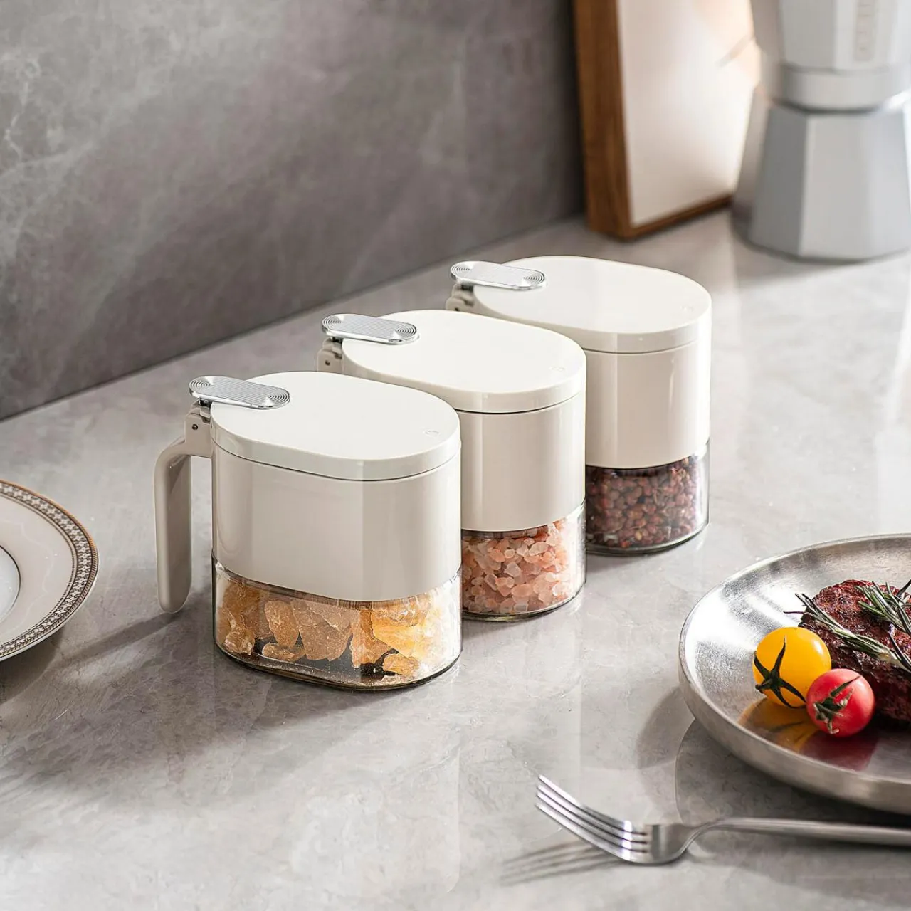 inny Pojemnik z uchylna pokrywką 340 ml jasnoszary