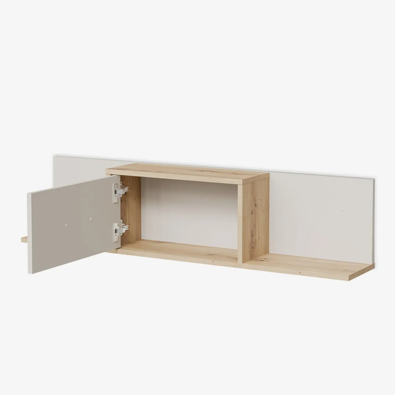 - Półka ma zamykaną szafkę, w której możesz schować mniej istotne przedmioty.