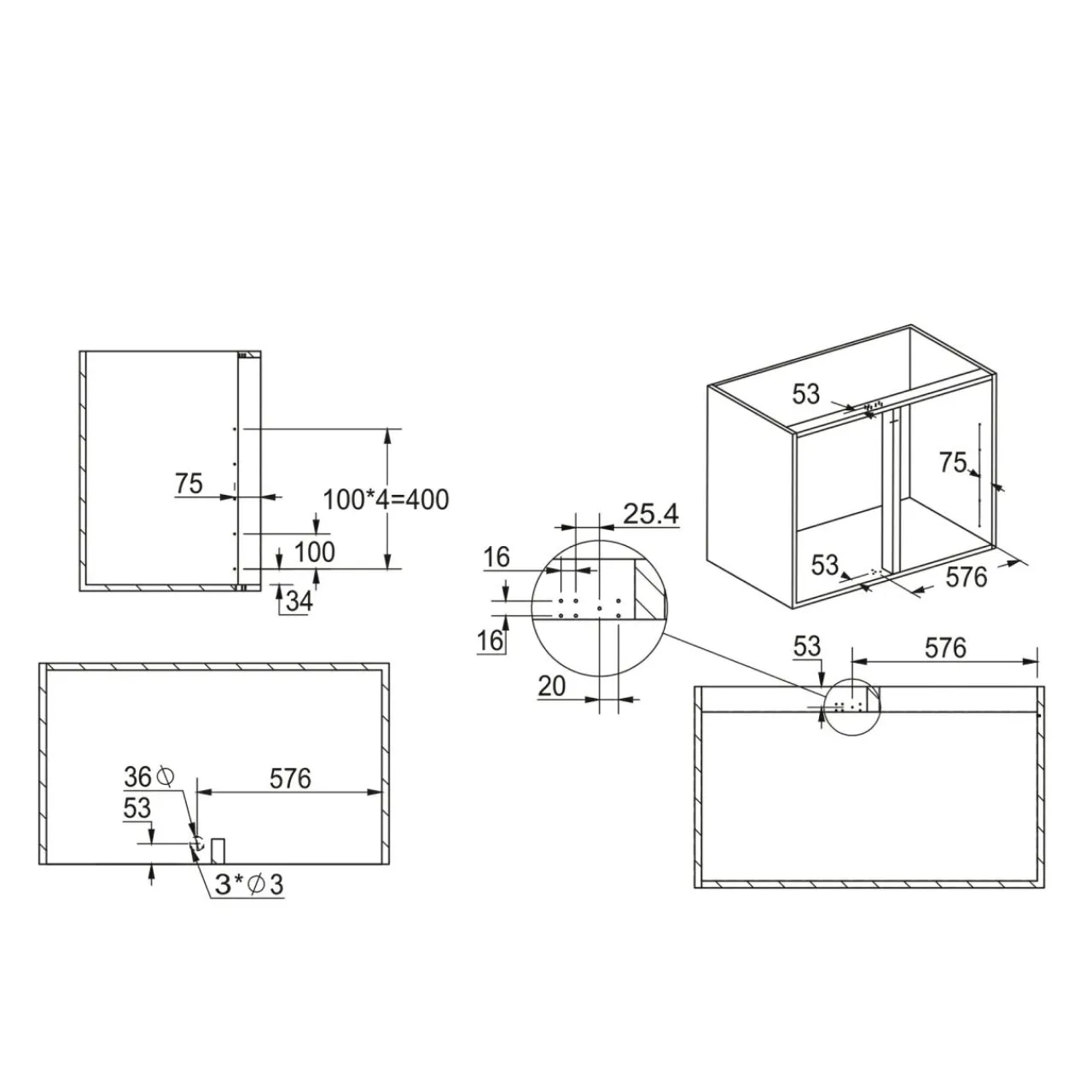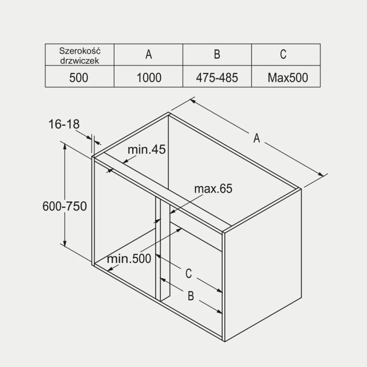 CARGO INSIDE STAR należy montować we wnętrzu szafki o minimalnej szerokości zewnętrznej 100 cm i wysokości wewnętrznej co najmniej 60 cm.