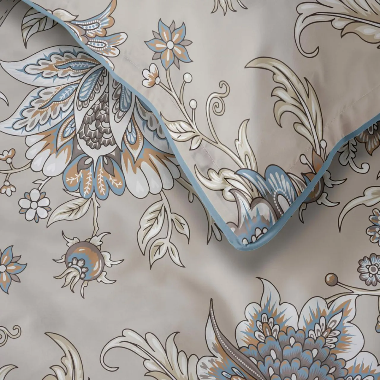 - Pościel została wykonana z perkalu – bawełny o gęstym splocie, który zwiększa wytrzymałość tkaniny i nadaje jej przyjemnie gładką fakturę.