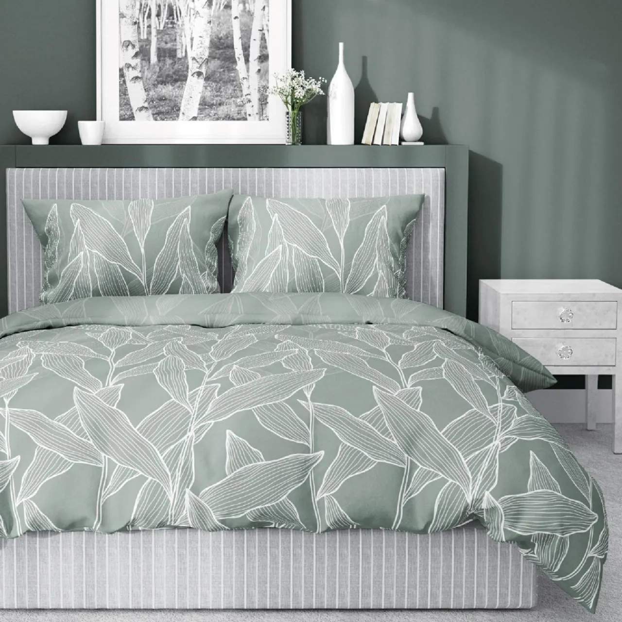Dzięki zielonej pościeli w liście HOME SATIN zadbasz o relaksujący, harmonijny akcent wnętrza.