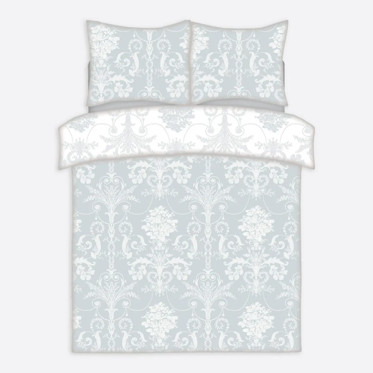 Pościel z klasycznym białym ornamentem nada Twojej sypialni sznytu w stylu glamour.