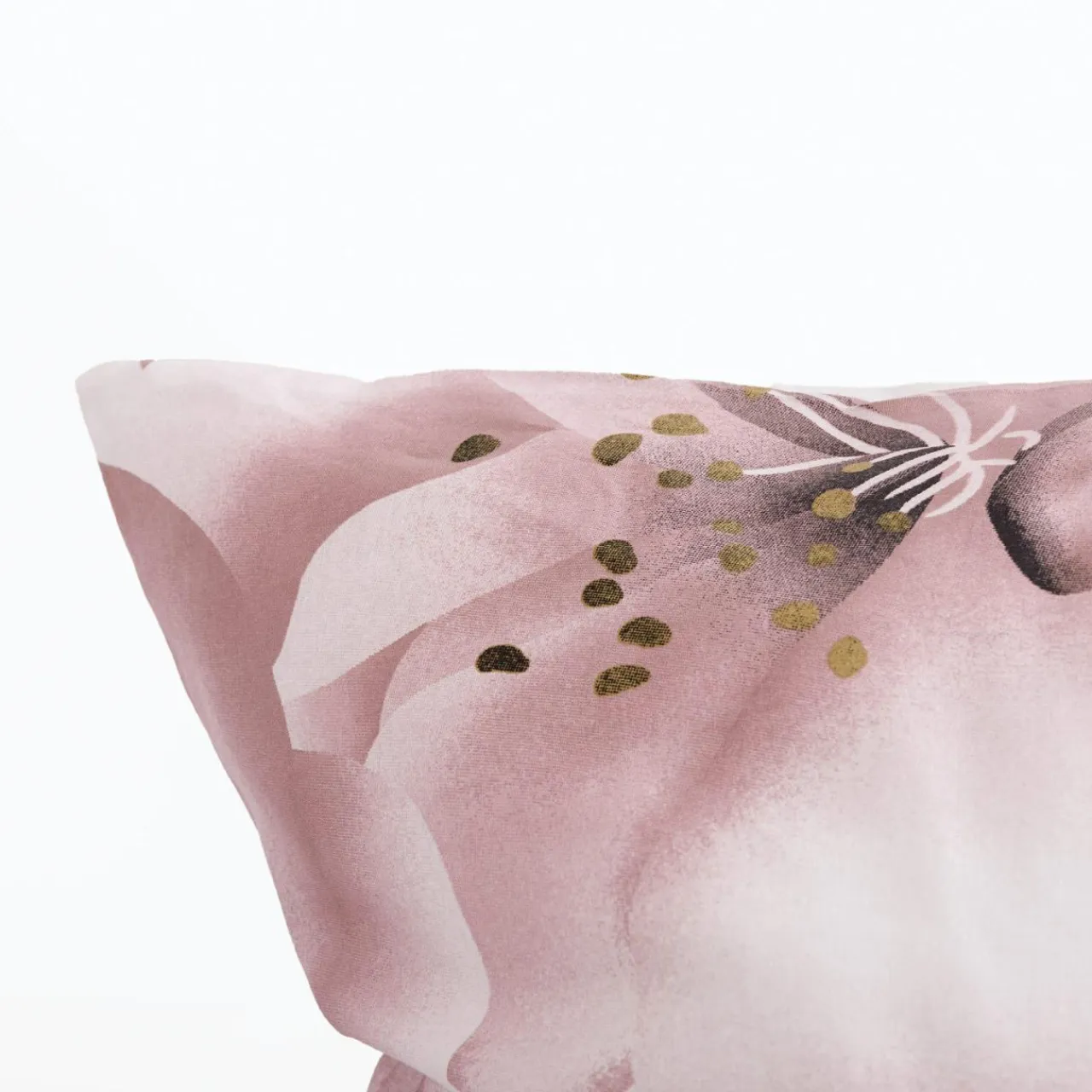 - Biel tła i eteryczność różowego wzoru sprawią, że Twoje wnętrze zyska lekkość i zwiewność – na zasadzie kontrastu komplet doskonale sprawdzi się w ciemniejszych i bardziej surowych pomieszczeniach.