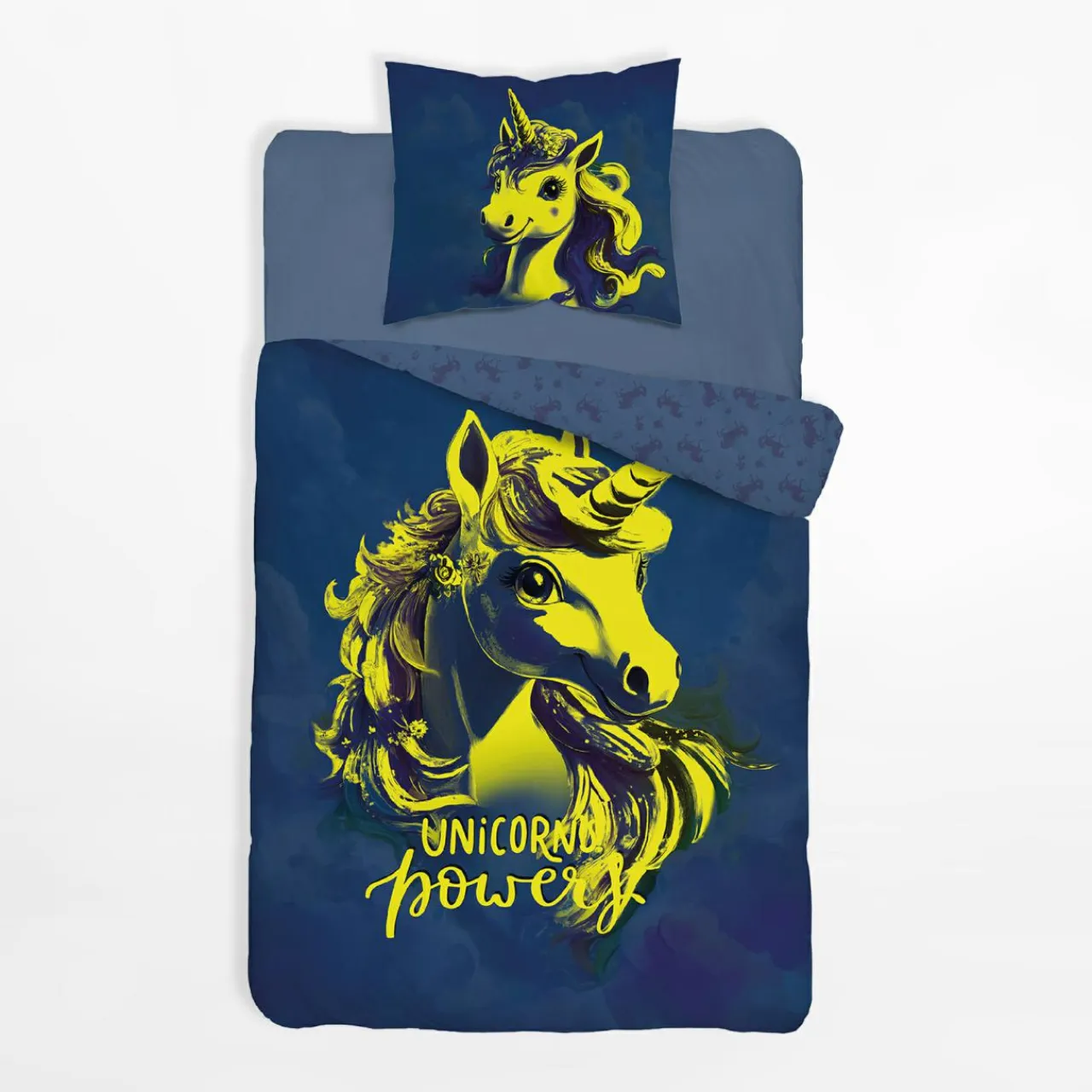 Bawełniana pościel posiada fluorescencyjny nadruk , który zaświeci w ciemności.