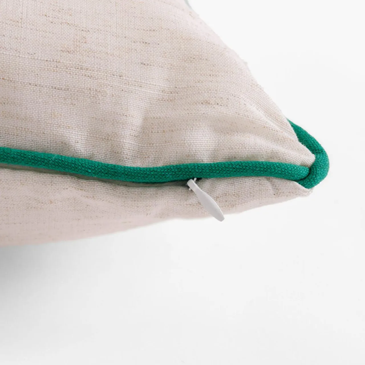 Brzegi poszewki mają również ciemnozieloną lamówkę.