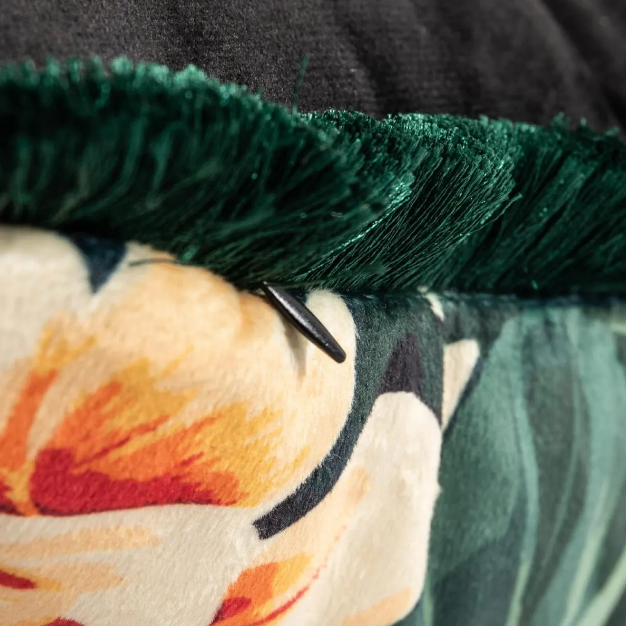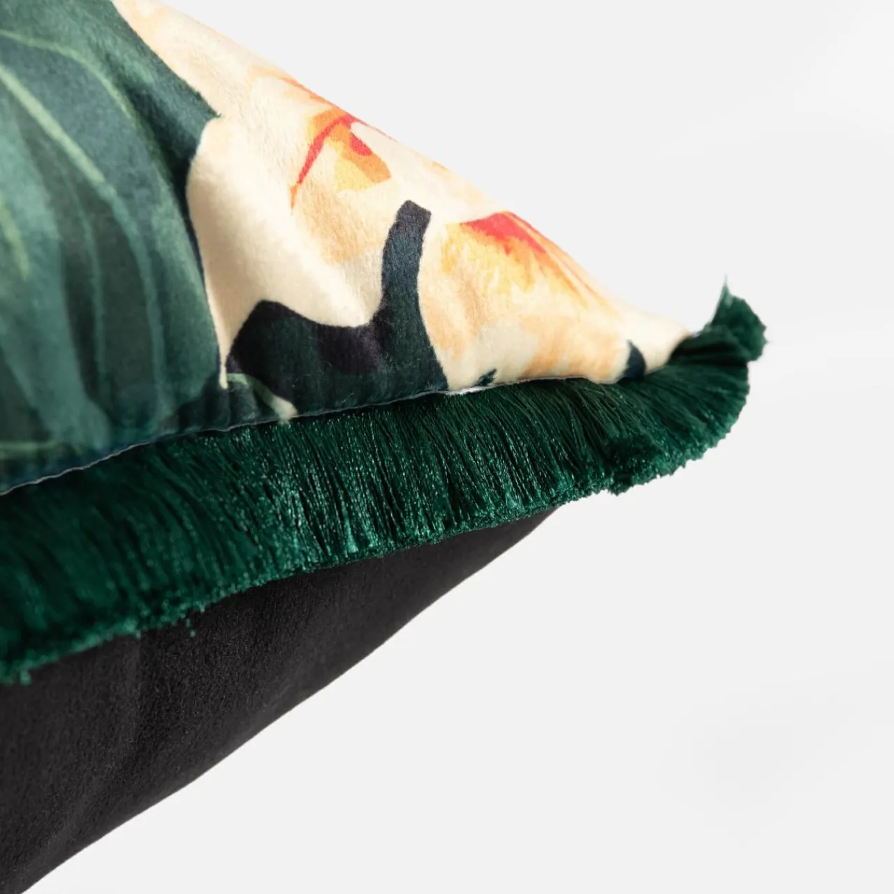 Zielona poszewka na poduszkę z kolekcji TROPICANA wyróżnia się intensywnym, lekko połyskliwym odcieniem.