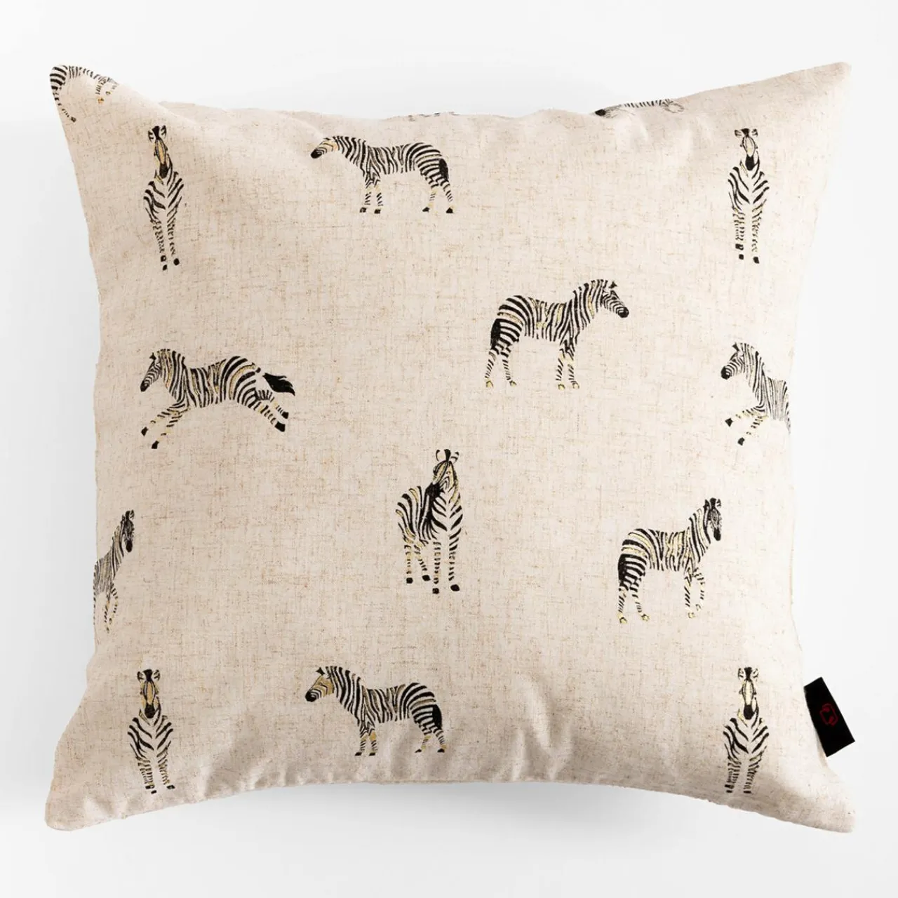 Dekoracyjna beżowa poszewka w zebry SUMMY jest uszyta z miłej w dotyku tkaniny – ma podwyższoną odporność na blaknięcie i ścieranie.