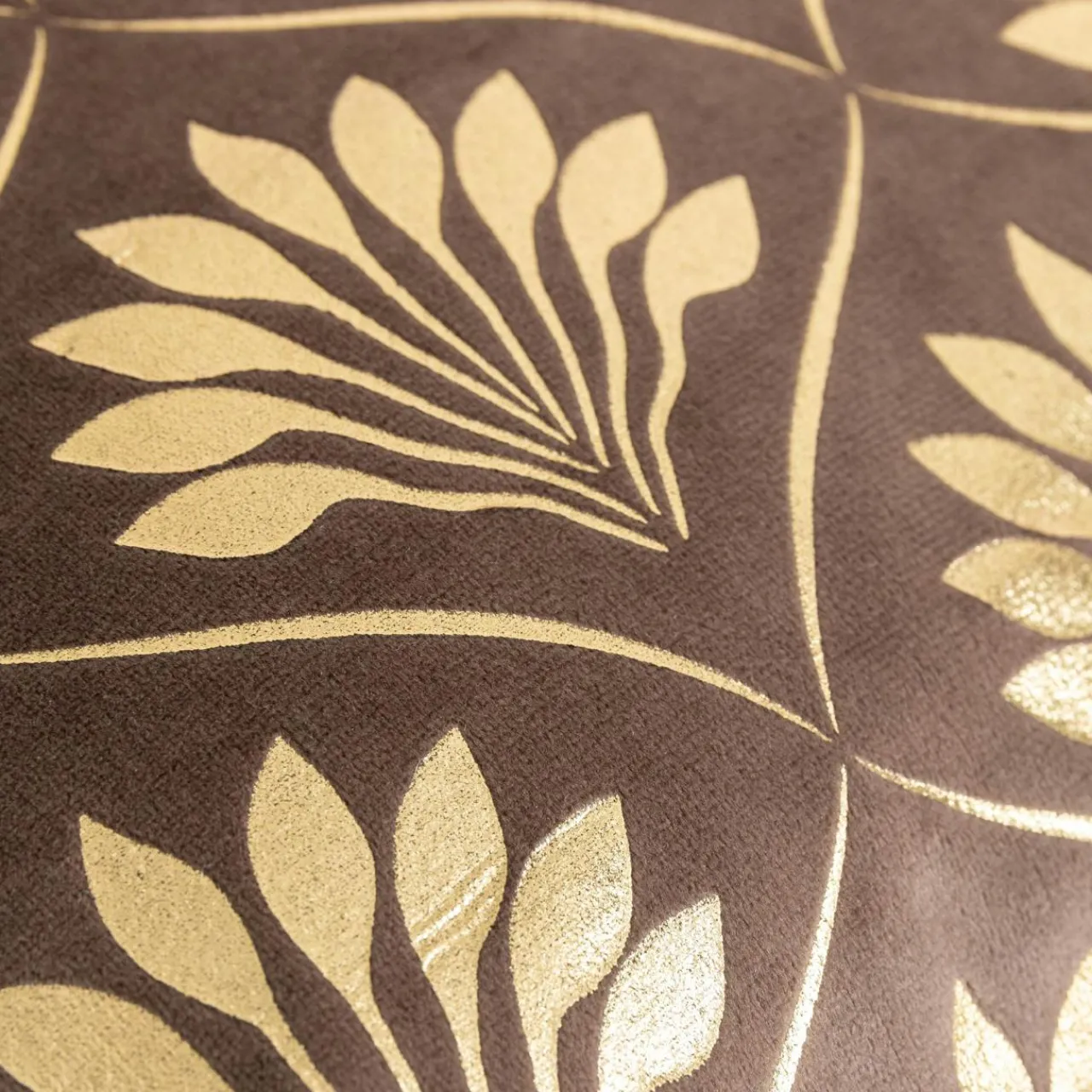 Brązowa poszewka DEKAR zaakcentuje aranżację w stylu art deco. Złoty motyw lekko połyskuje – z pewnością przykuje uwagę.