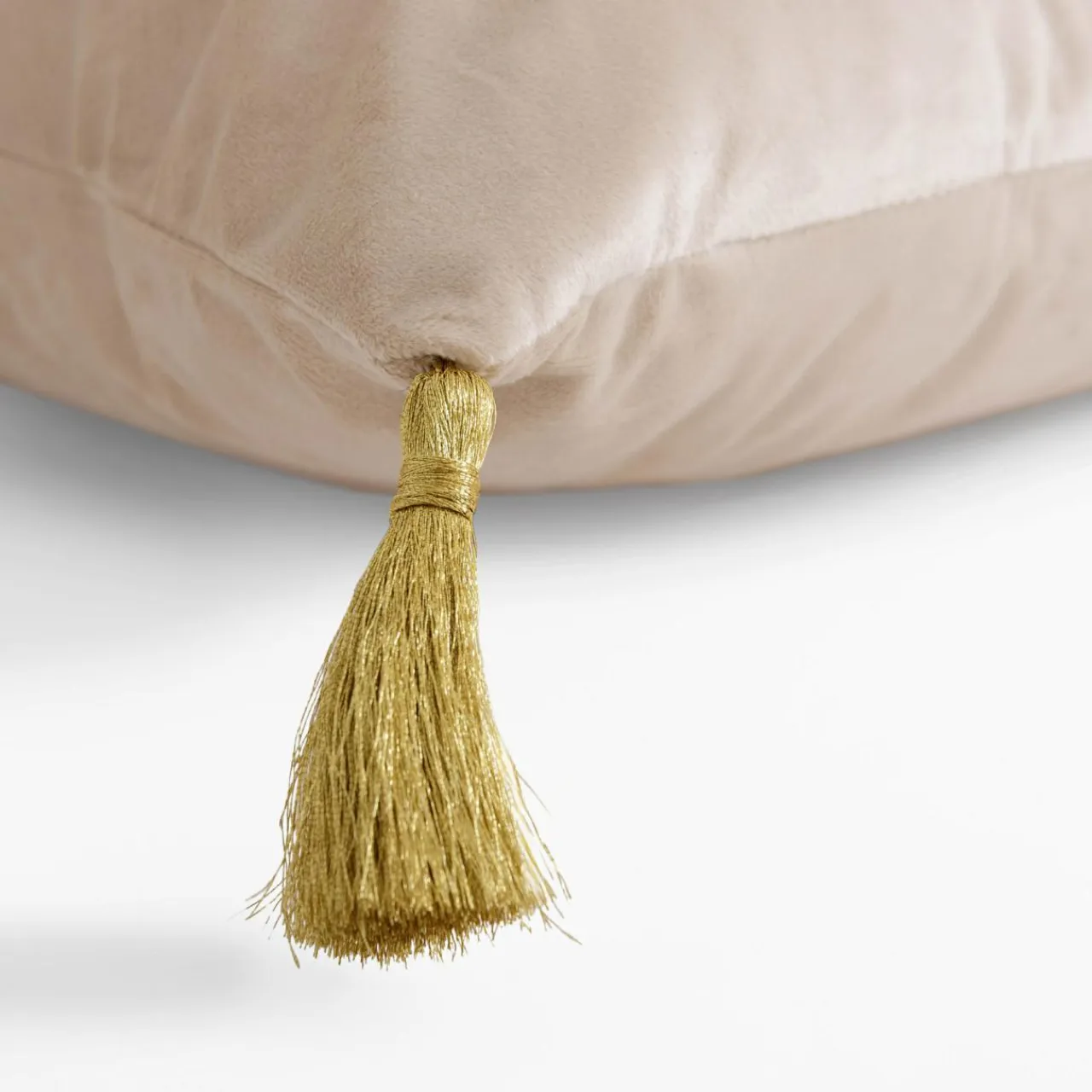 Gładka tkanina lekko się mieni, rogi poszewki są ozdobione złotymi chwostami.