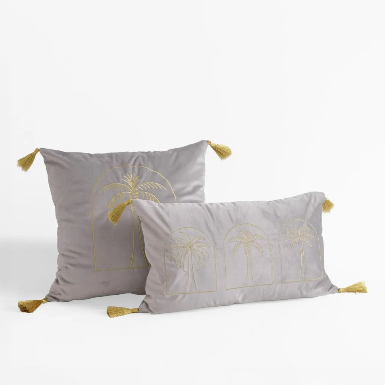 Srebrna poszewka DJERBA ze złotą palmą zaakcentuje egzotyczną aranżację.