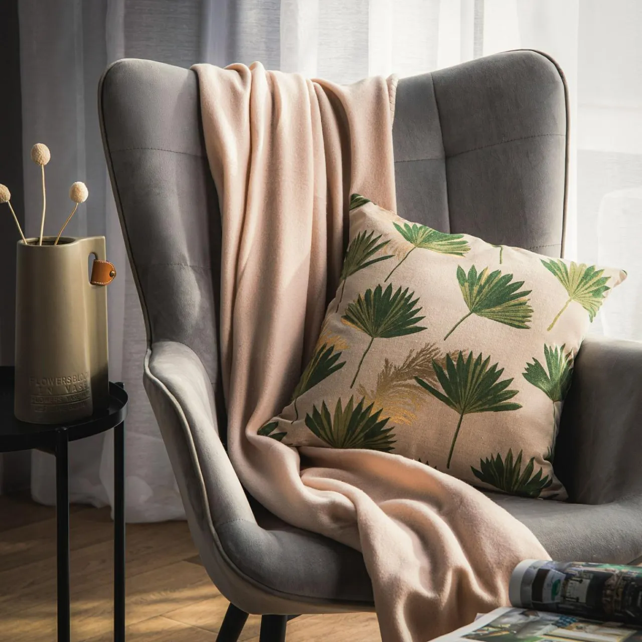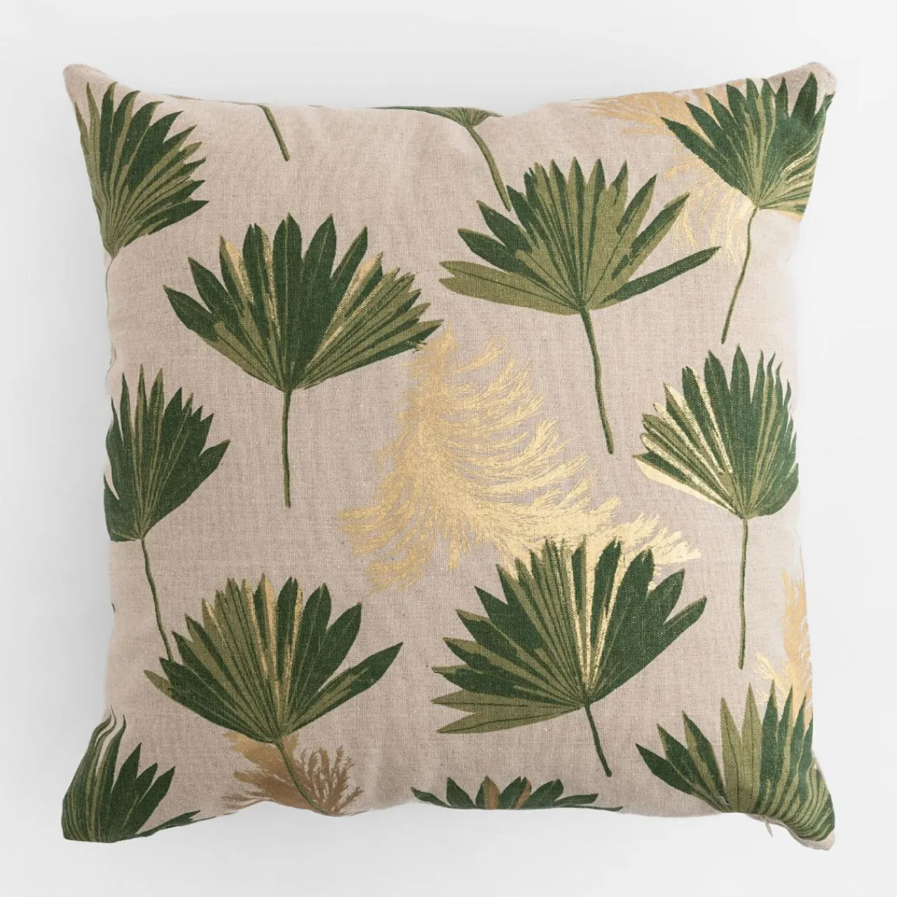 Zielone liście na jasnej poszewce IKORA pomogą wizualnie ożywić aranżację w salonie i sypialni.