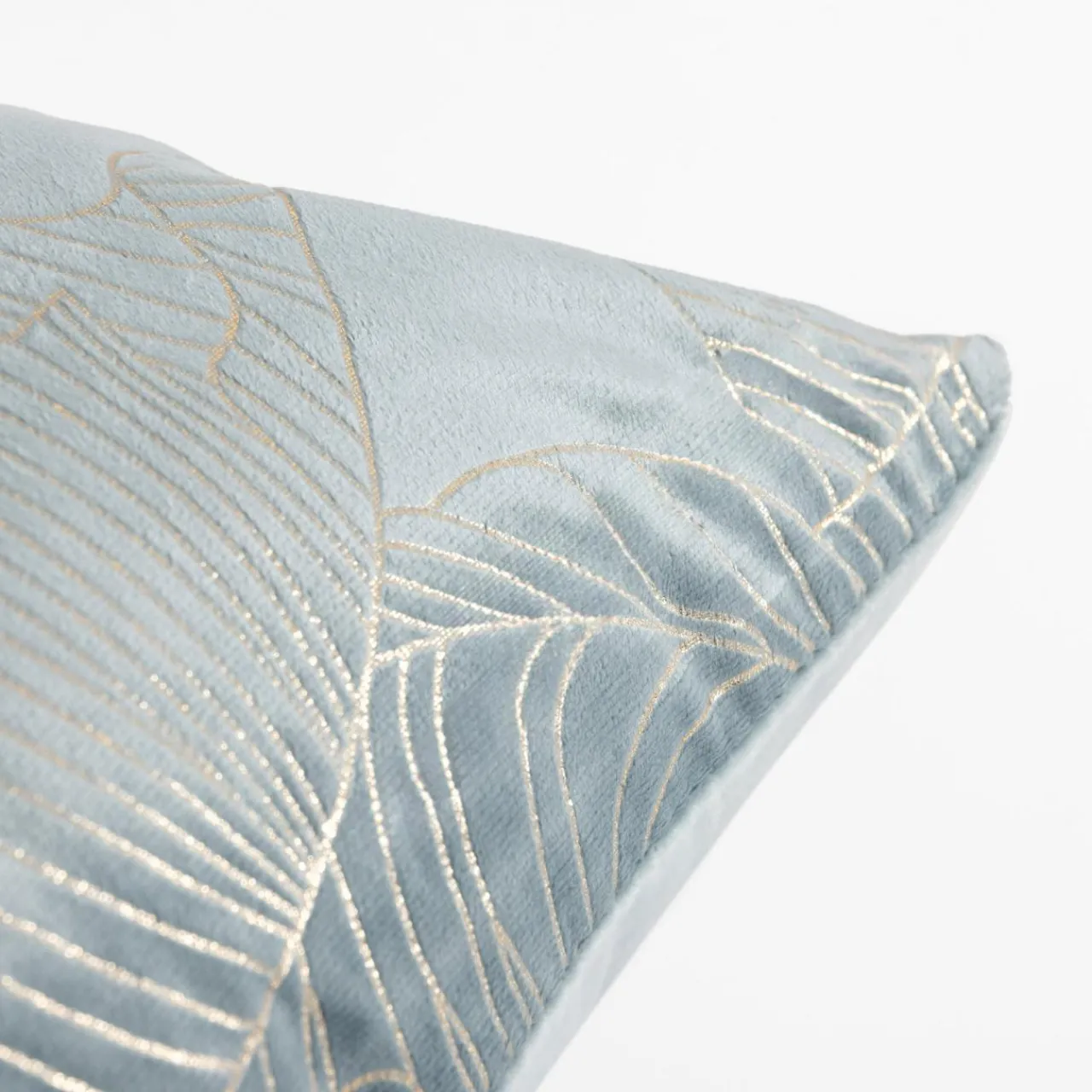 Welurowa poszewka ze złotym wzorem z kolekcji ESTHER ozdobi wnętrze, w którym wypoczywasz. Pokój zyska więcej blasku, a roślinny motyw doda aranżacji naturalności.