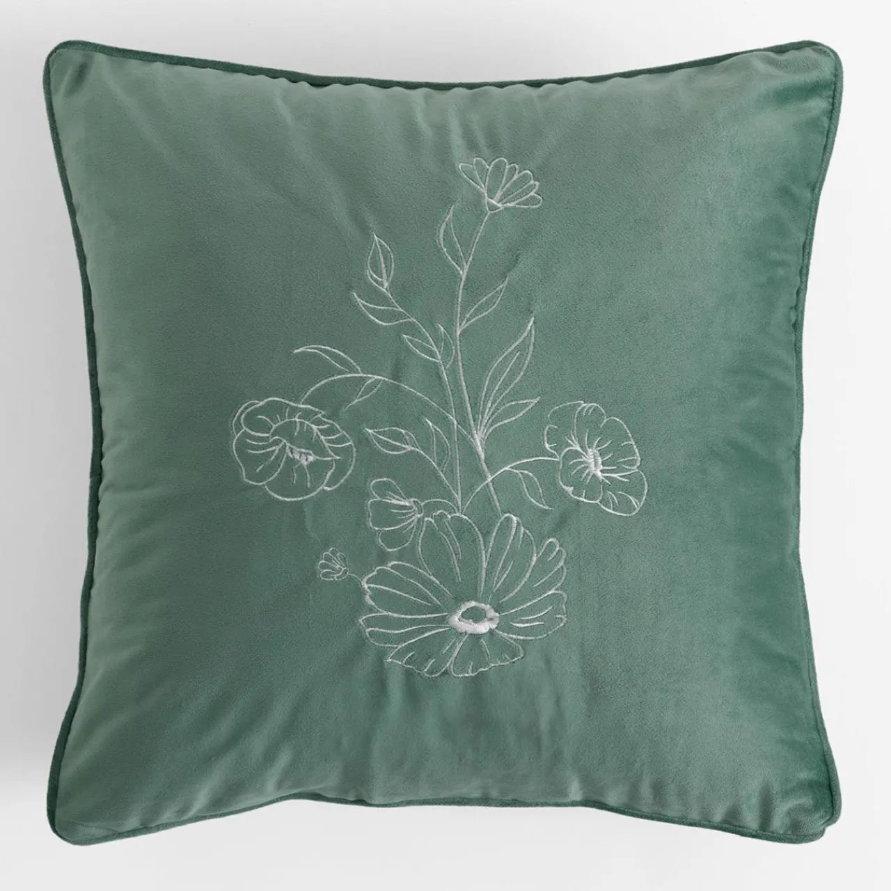 Zielona poszewka PERLA jest miękka i gładka w dotyku. Wyróżnia się białym, haftowanym wzorem.