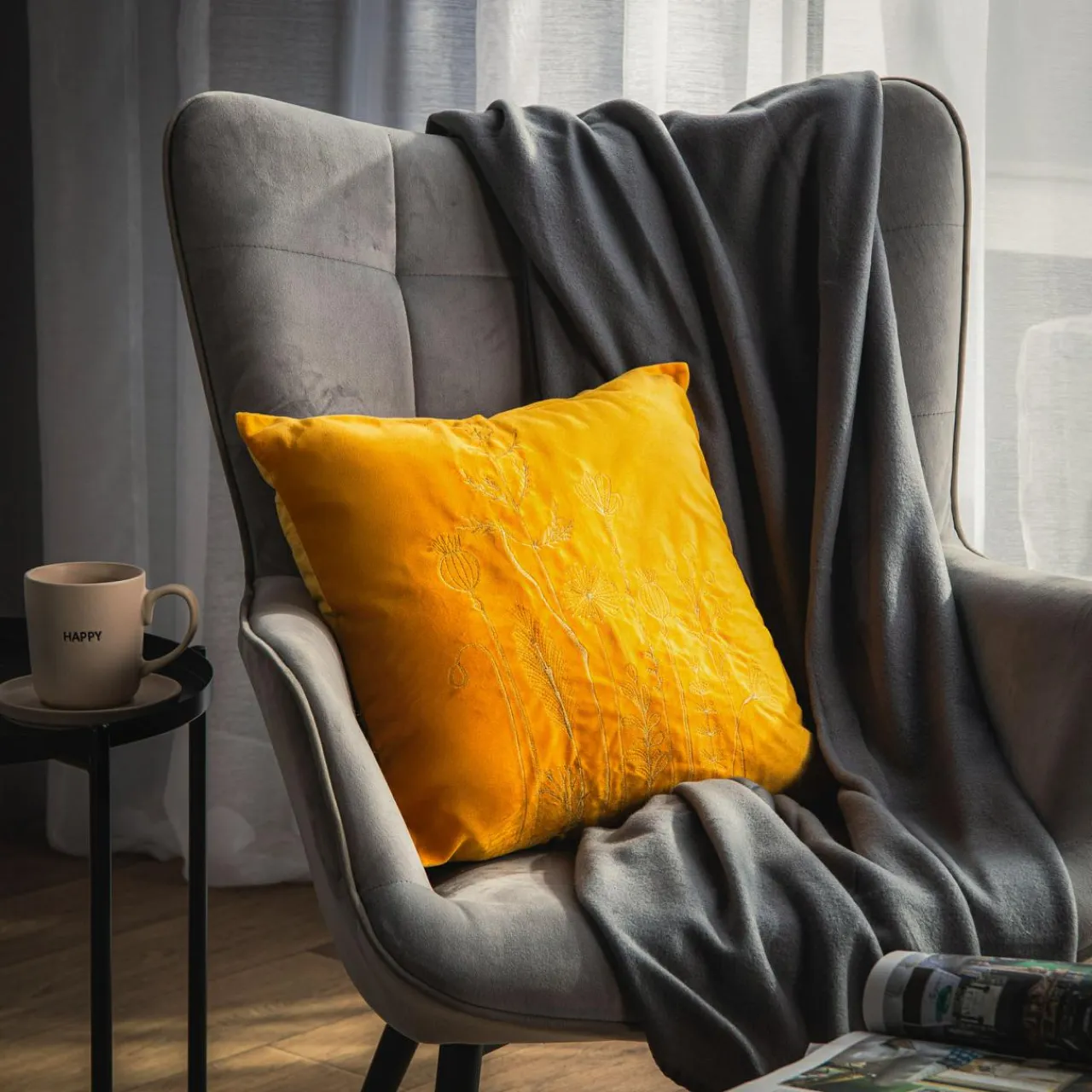 Wprowadź więcej słonecznych barw do swojego wnętrza. Żółta poszewka MAIRO o welurowej strukturze sprawi, że aranżacja przyjemny, pozytywny akcent.