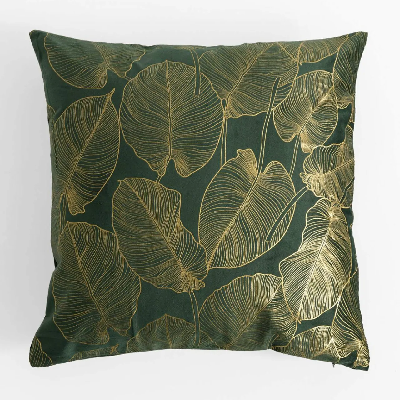 Złoty motyw w liście znajduje się po jednej stronie poszewki.