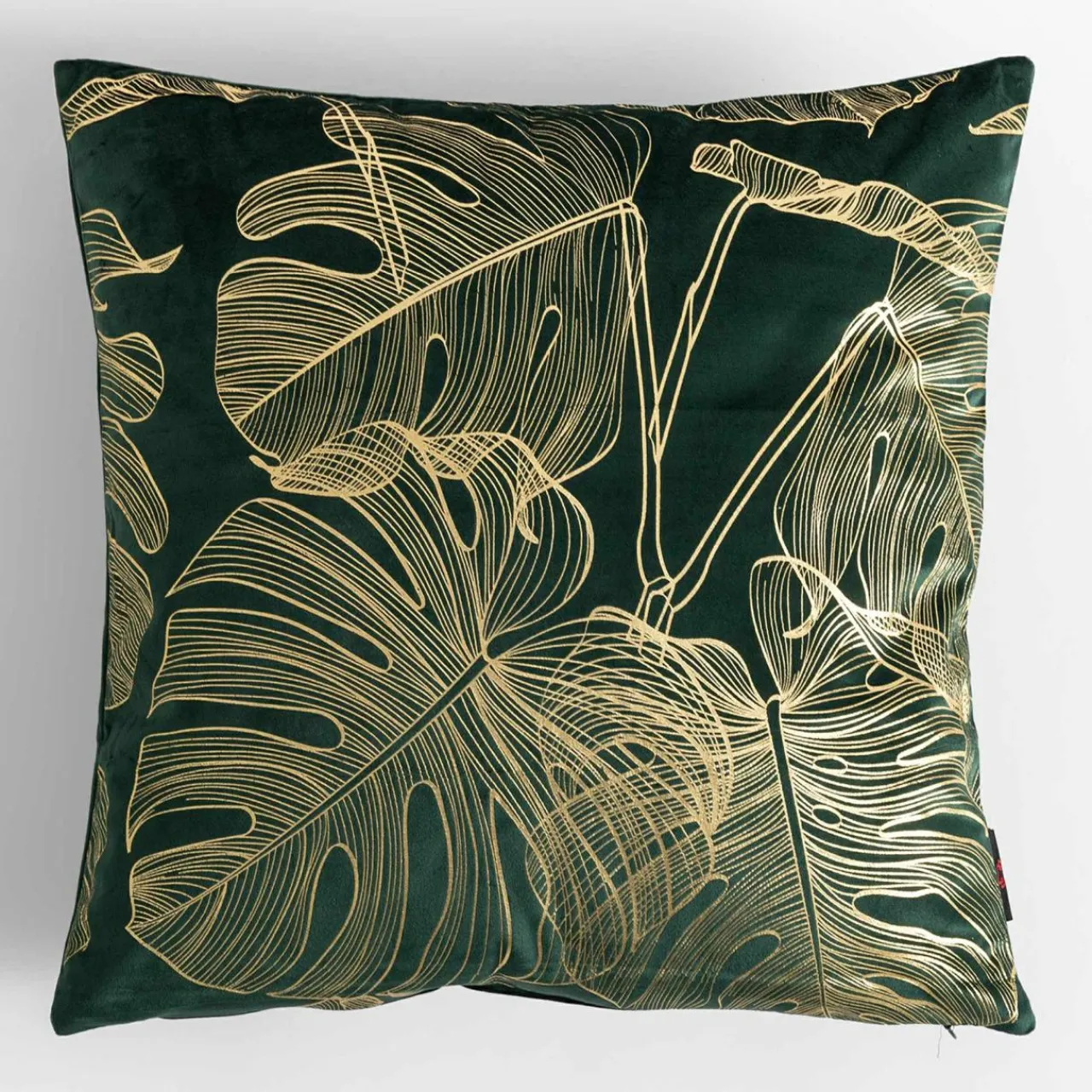 Nowoczesna poszewka AMBRO z roślinnym motywem monstery doda aranżacji subtelnej elegancji.
