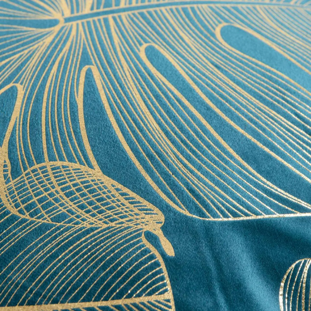 Dekoracyjna turkusowa poszewka AMBRO w monstery podkreśli barwny wystrój salon lub sypialni.