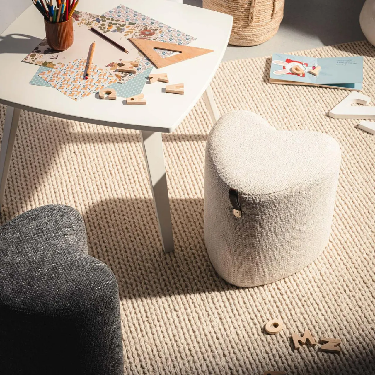 Mały puf ILLON w kształcie serca będzie uroczym dopełnieniem Twojego salonu. Dzięki niewielkiemu rozmiarowi puf sprawdzi się jako dodatkowe miejsce dla gości.