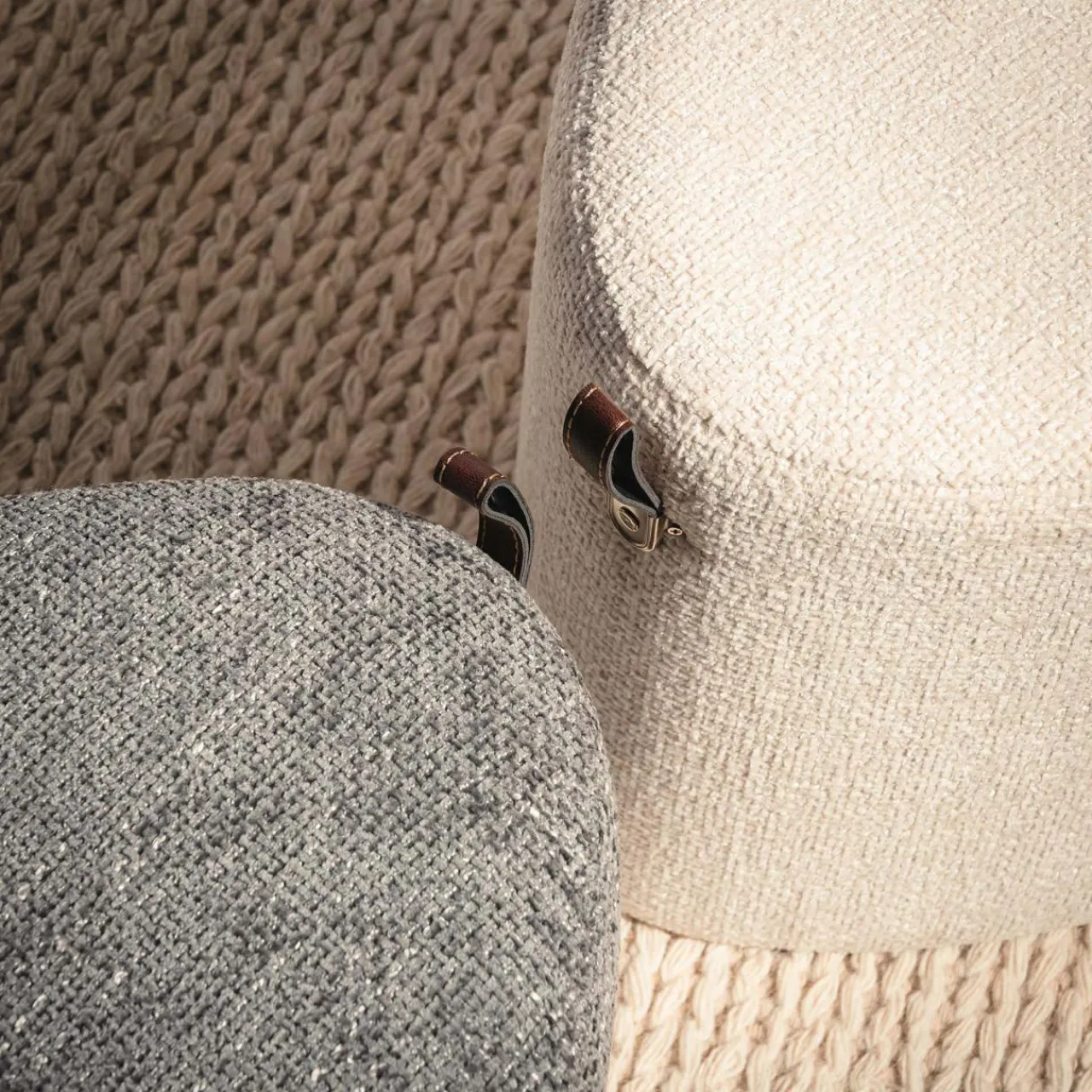 Możesz stworzyć ciekawą dekorację wnętrza, łącząc kilka puf w kształt kwiatu.