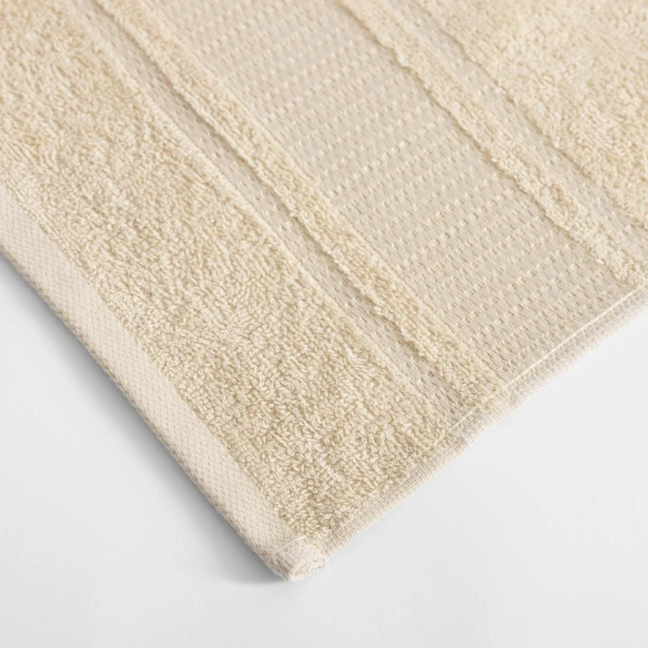 - Kremowy ręcznik będzie dobrze wyglądał na tle zielonej lub ciemnoszarej ściany.