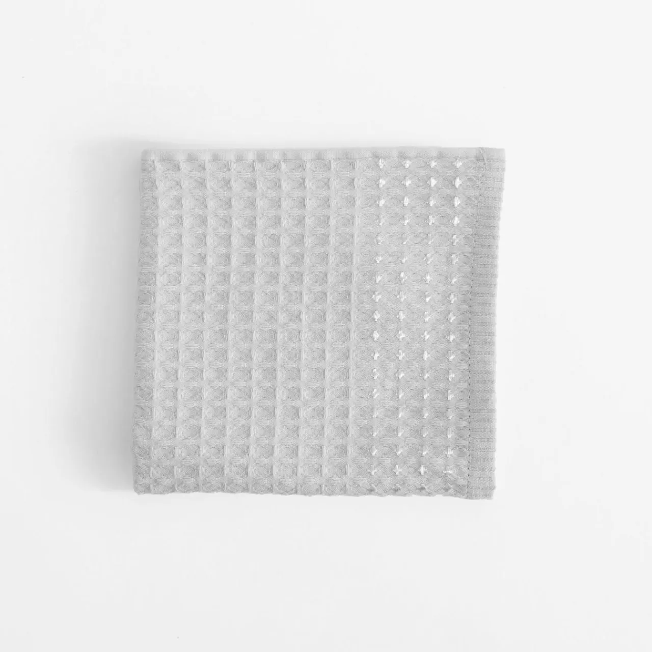 Bordiura lekko się mieni – jasnoszary ręcznik zyskuje elegancki akcent.