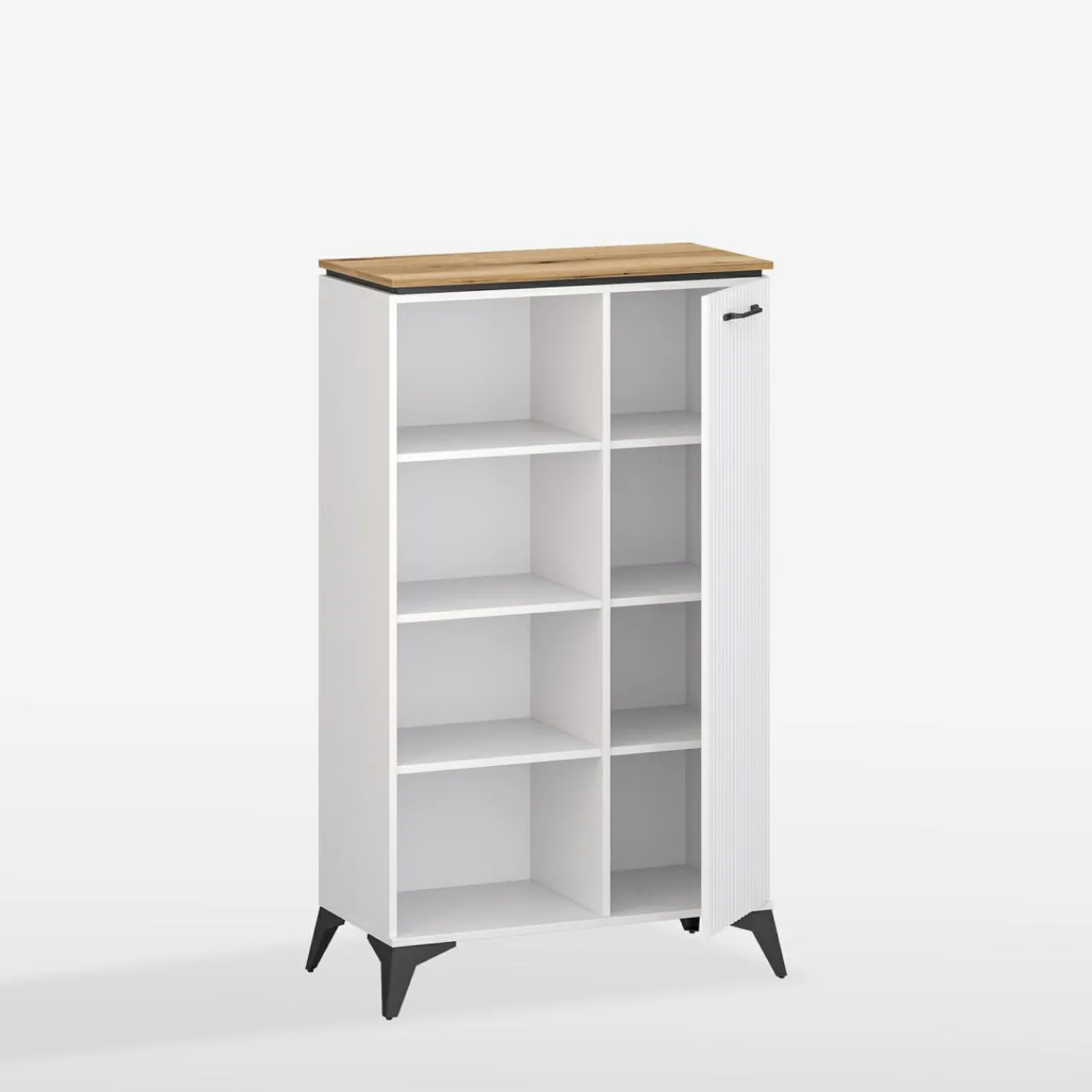 Na regale VELUTTO poukładaj ulubione książki w otwartych wnękach. Będą dekoracją pomieszczenia, a jednocześnie zyskasz do nich łatwy i szybki dostęp w każdej chwili.