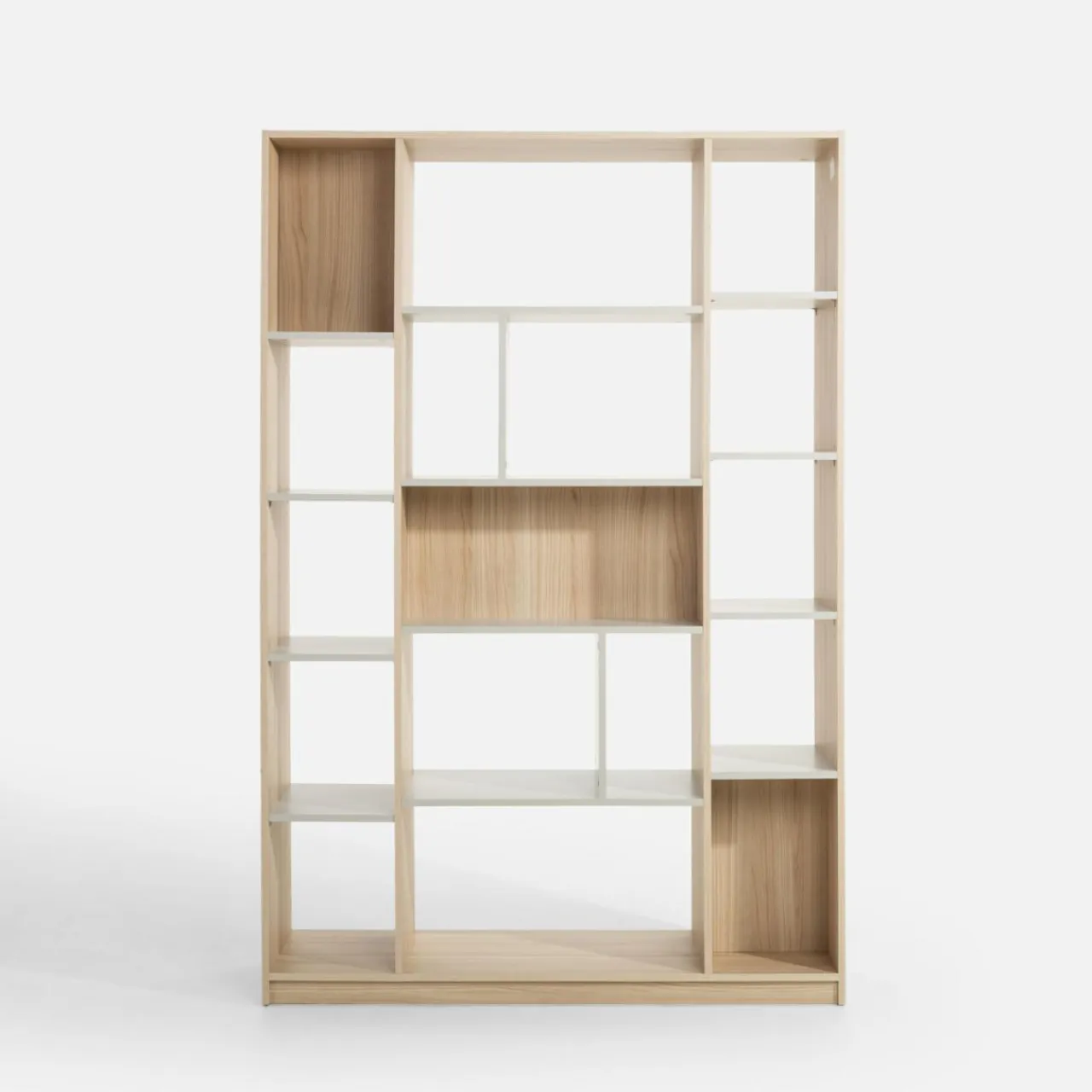 Regał otwarty RYGA jest dwustronny, dlatego świetnie sprawdzi się w roli ścianki dzielącej pokój na strefy.