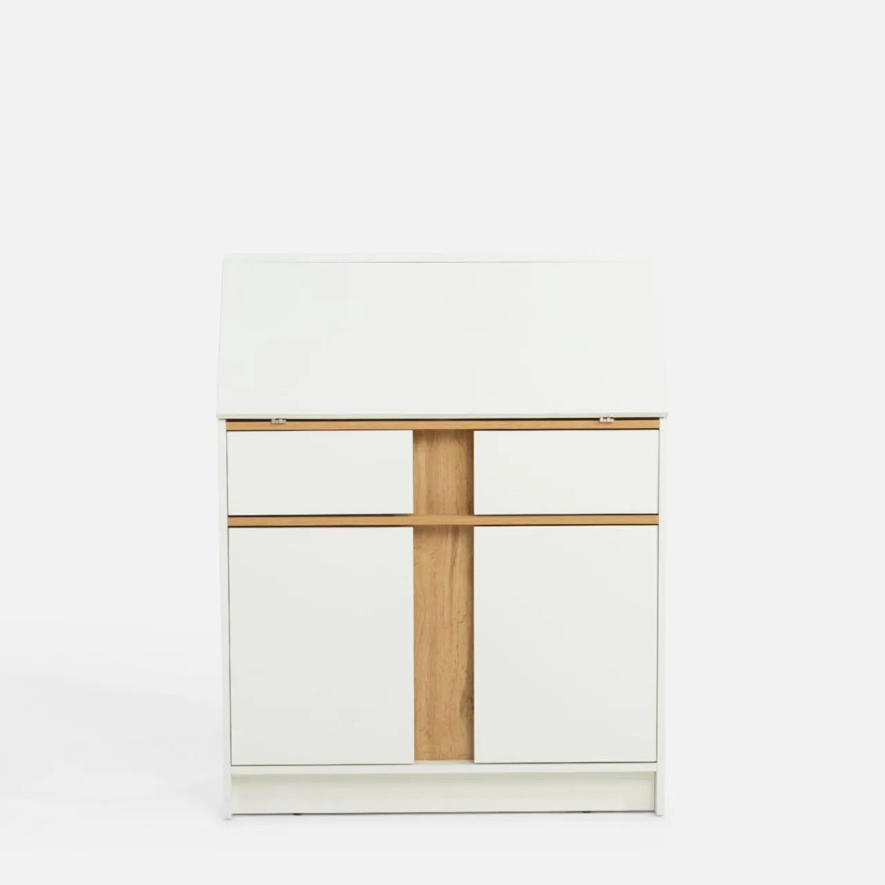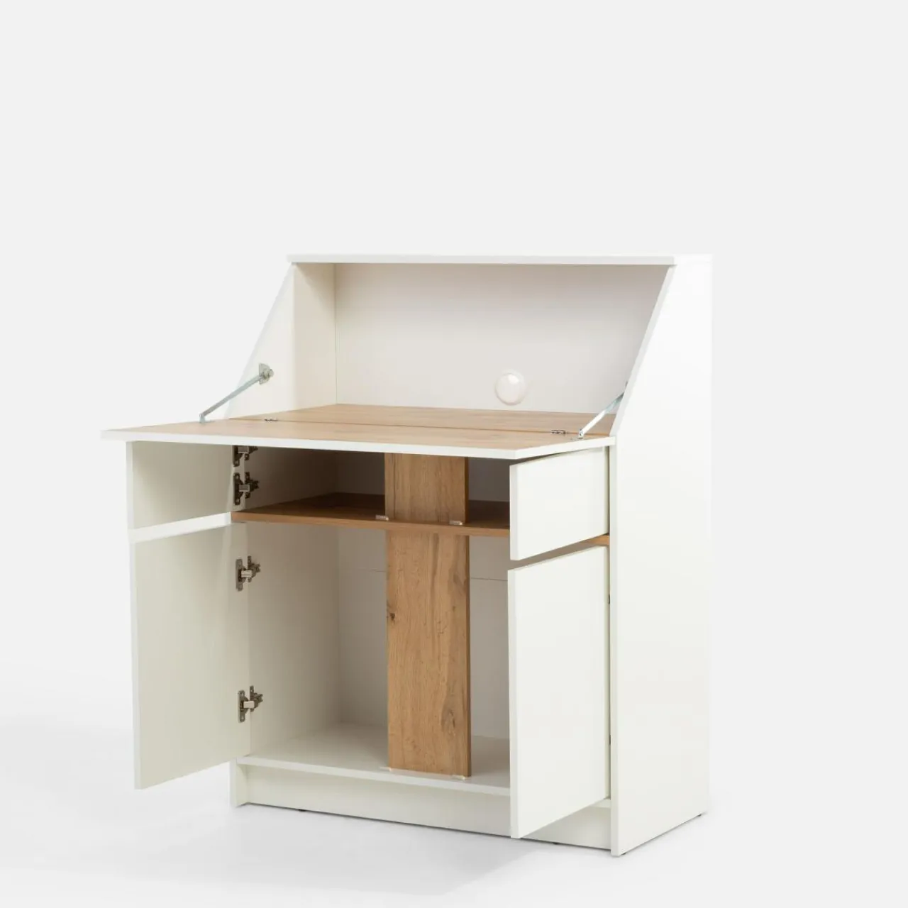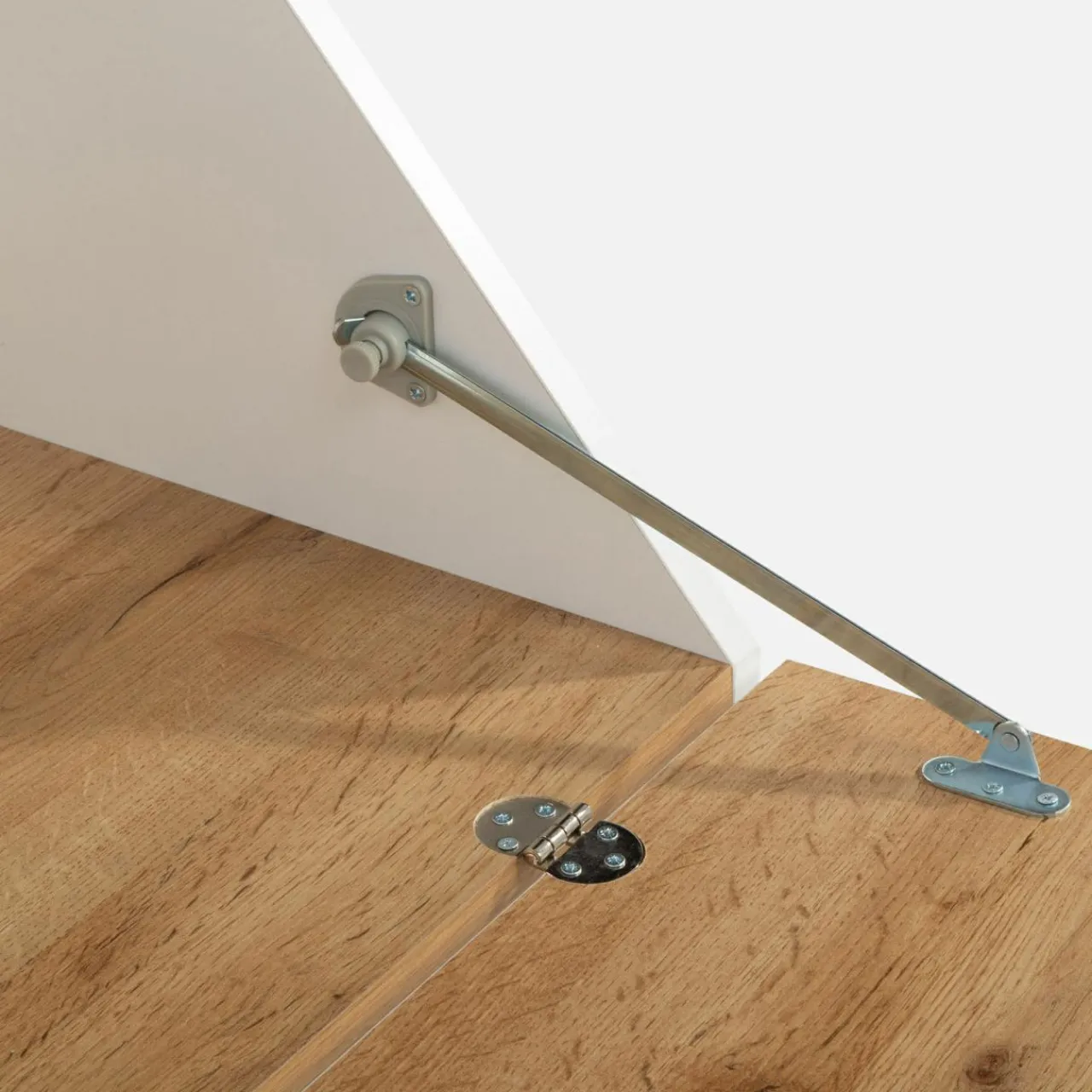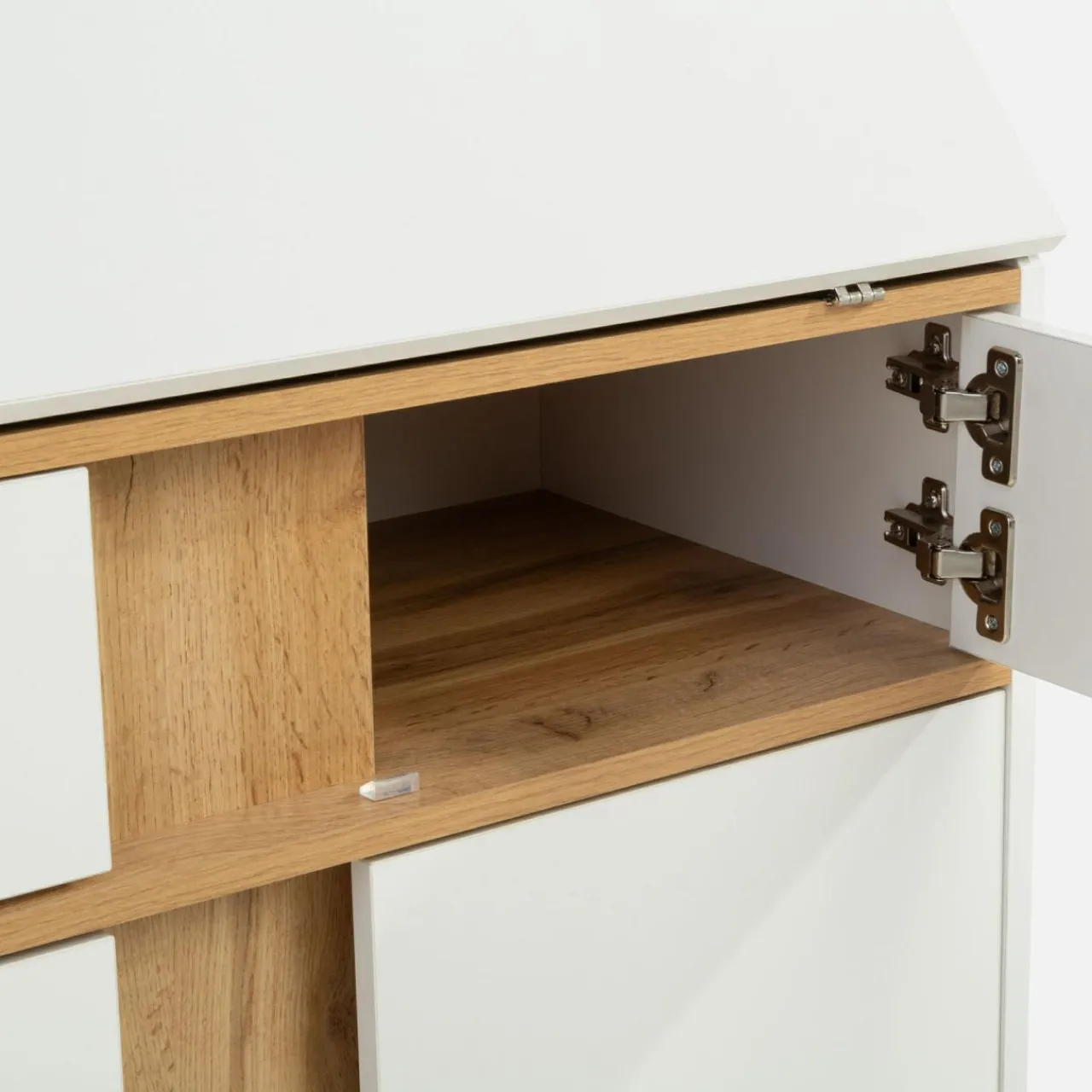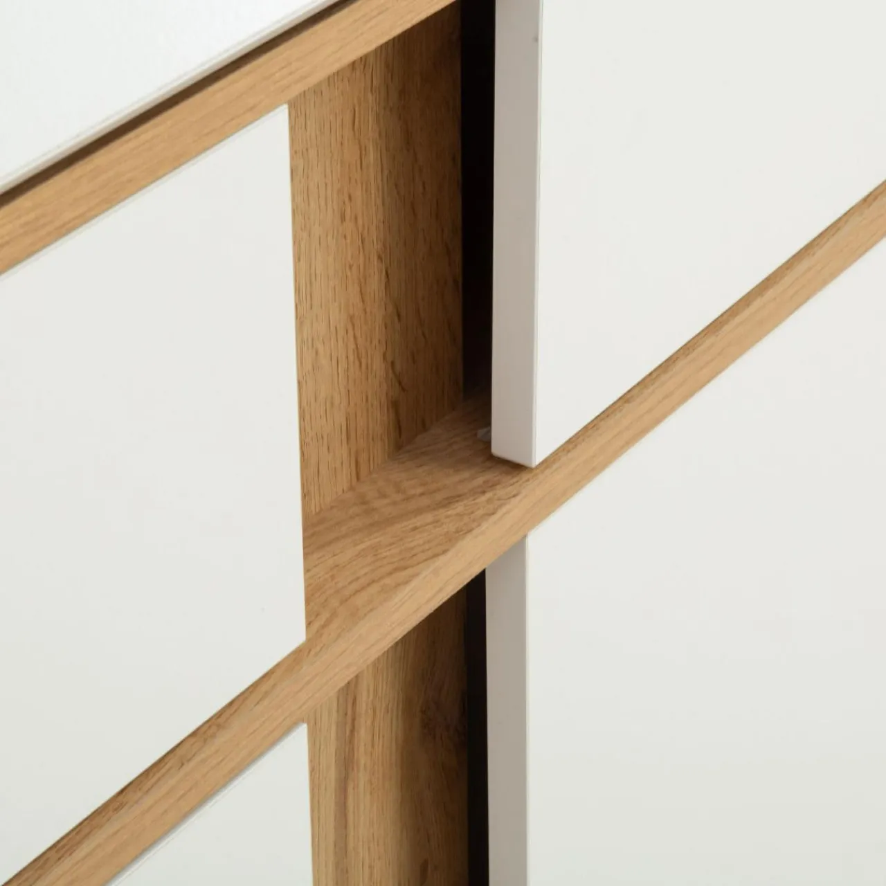 - Prosta budowa w kolorach bieli i rysunku dębu wotan świetnie wpisze się w nowoczesne i minimalistyczne wnętrza.