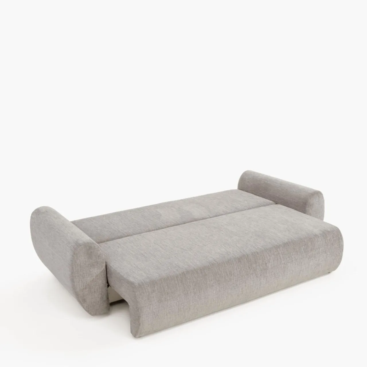 Jasnoszara sofa DOLLY z tkaniny o wyraźnej strukturze sprawdzi się w salonie jako miejsce do wypoczynku i okazjonalnego przenocowania gości.