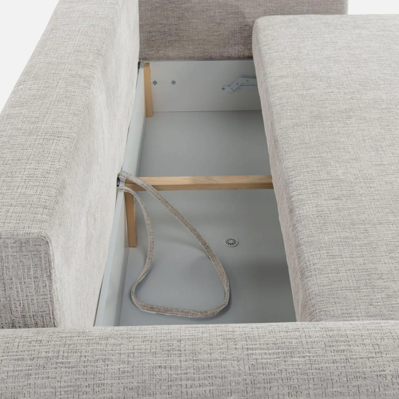 - Pojemnik na pościel – schowek pod siedziskiem mieści komplet pościeli, koc lub poduszki – zawsze pod ręką.