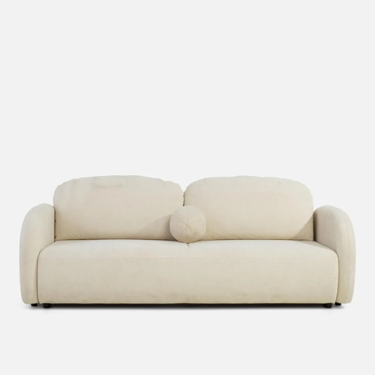 Sofa ROMA wyróżnia się subtelnym, jasnobeżowym odcieniem i zaokrąglonym kształtem, które nadają jej przytulny wygląd. Posiada funkcję rozkładania z powierzchnią spania 200×146 cm oraz praktyczny pojemnik na pościel. Miękkie poduszki dopełniają komfortu użytkowania.
