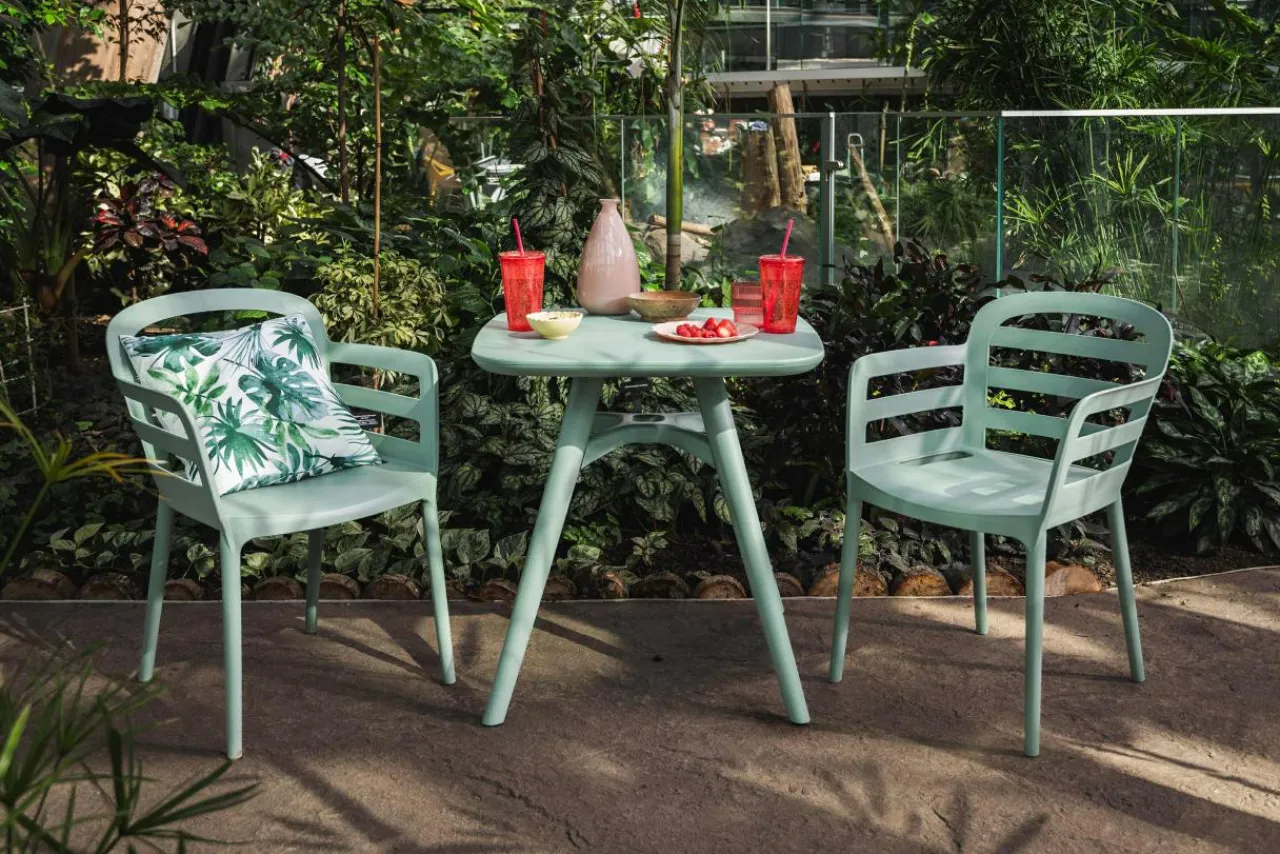 Stół HARDIM o szerokości 71 cm zmieści się zarówno w niewielkich ogródkach, jak i balkonach.