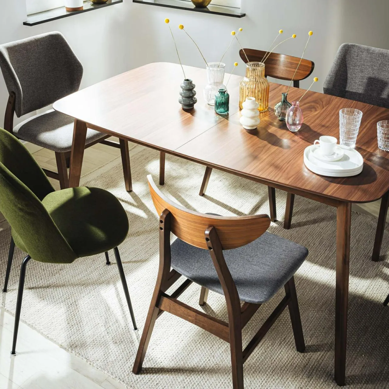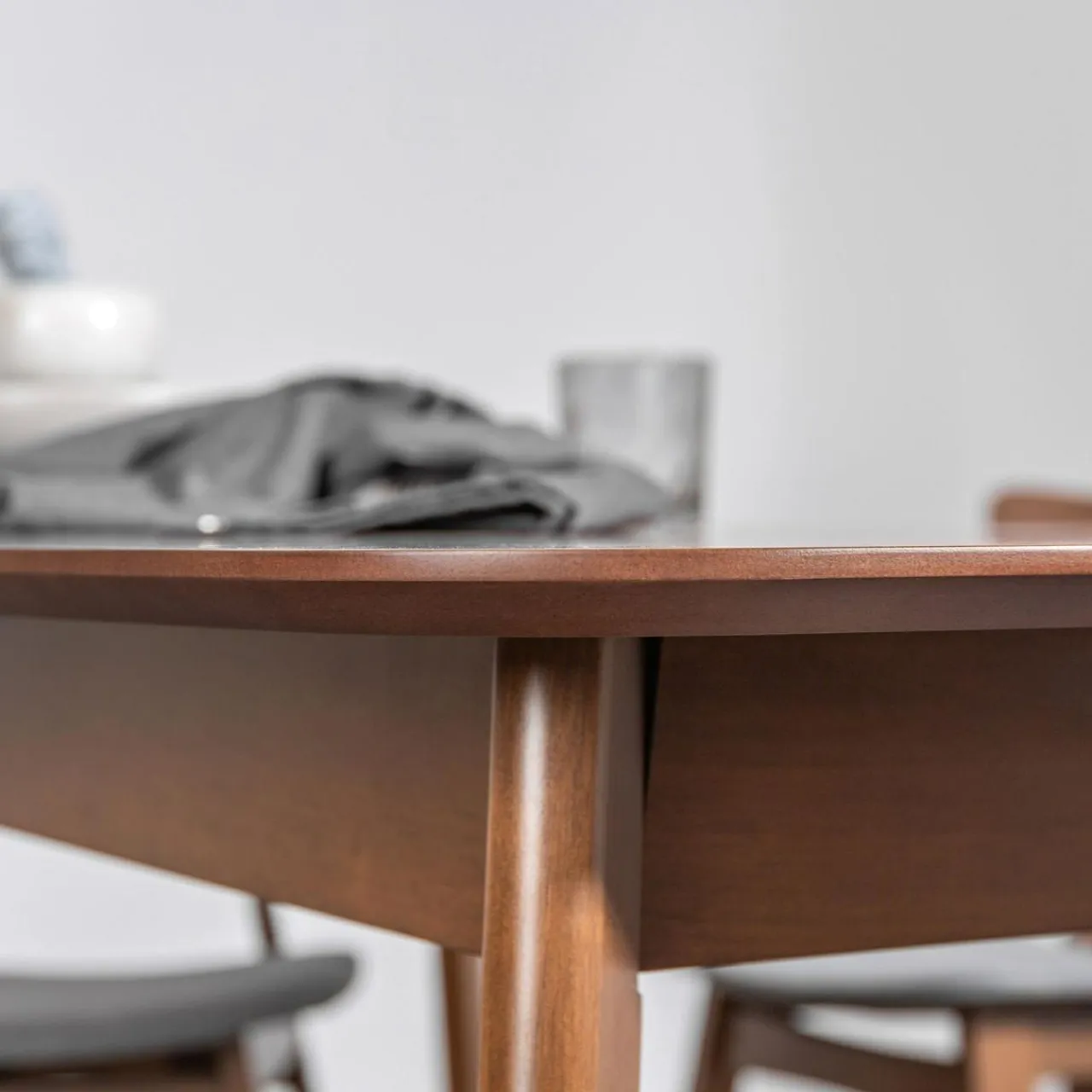 Szlachetna ciemna barwa drewna będzie prezentować się elegancko w części jadalnianej. Zaokrąglone brzegi blatu złagodzą linie aranżacyjne.