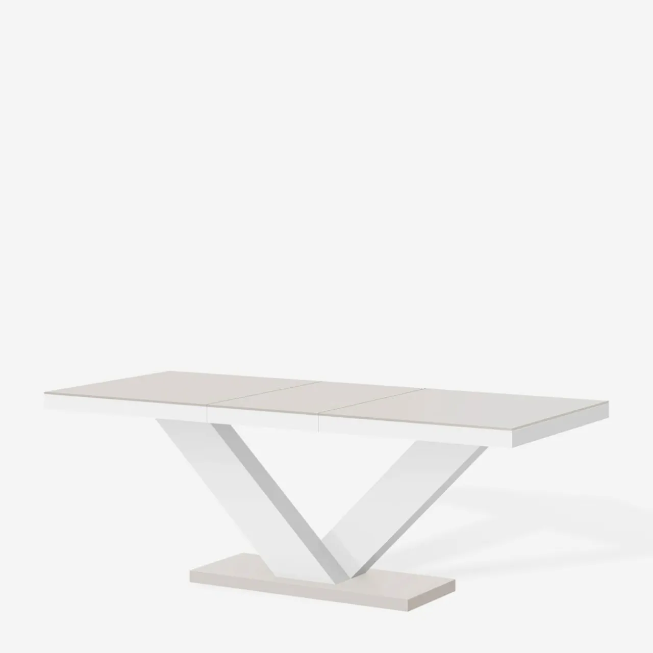 Stół rozkładany VICTORIA MAT posiada charakterystyczną podstawę w kształcie litery „V”.