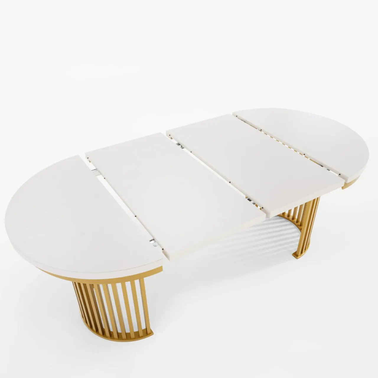 - Dzięki 2 zewnętrznym wkładkom blat stołu można wydłużyć do 200 cm i przygotować nakrycia nawet dla 10 osób.