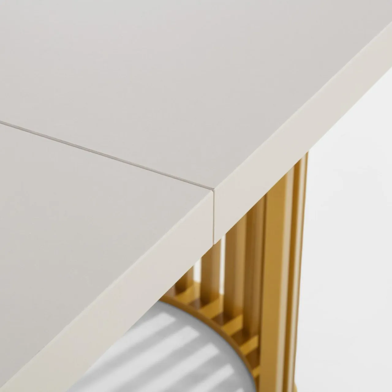 Subtelna kolorystyka beżu i drewna bukowego sprawia, że stół harmonizuje z też z wnętrzami w stylu skandynawskim czy minimalistycznym.