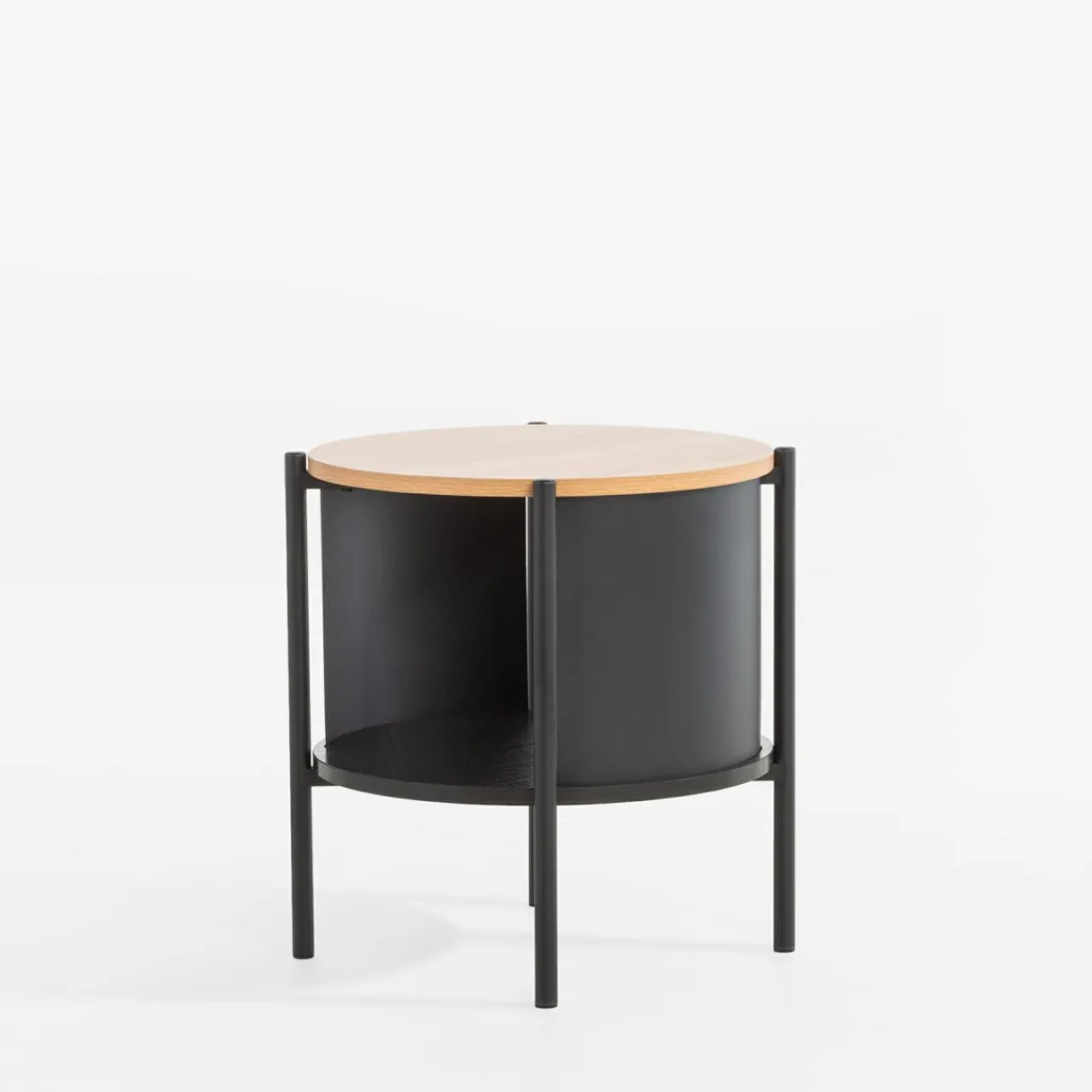 Stolik HILTO świetnie dopełni nowoczesne i industrialne aranżacje, dzięki połączeniu czarnego metalu i imitacji drewna w jasnym i ciemnym wybarwieniu. Okrągły kształt stolika złagodzi linie aranżacyjne.