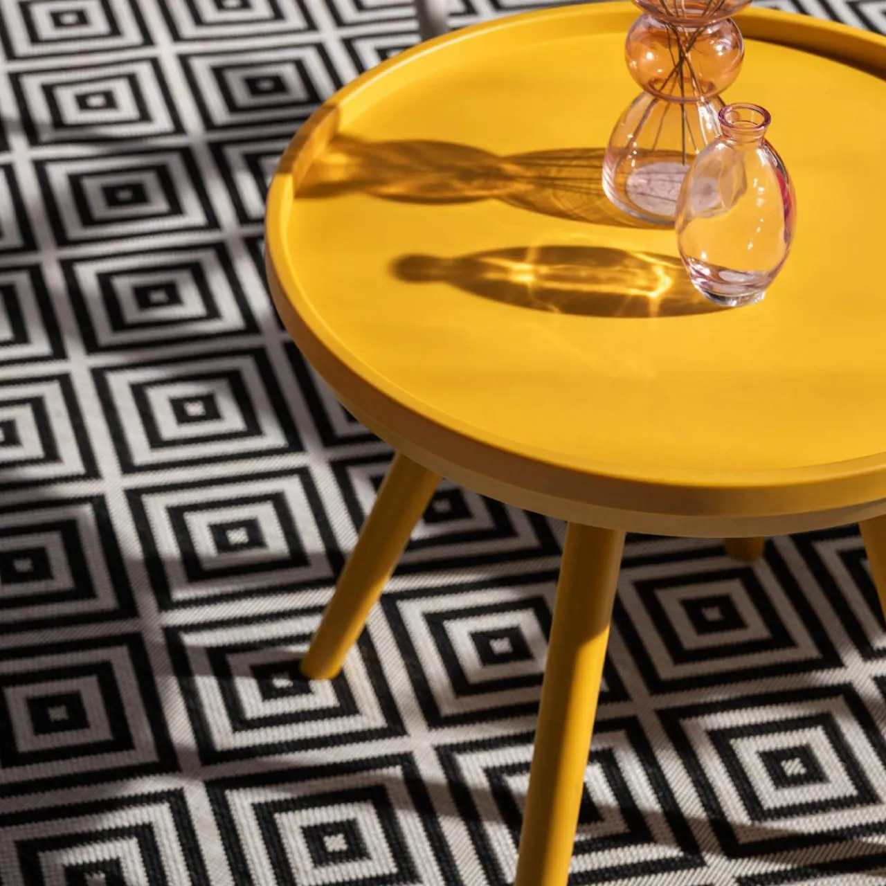 Stolik HECCIANO dostępny jest w 3 letnich kolorach — jasnozielonym, różowym i żółtym.