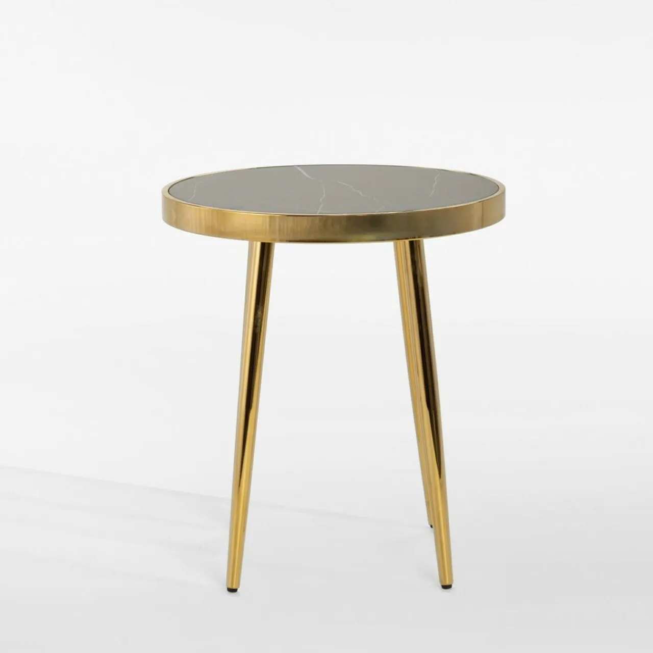 - Blat został wykonany z marmurkowego szkła w kolorze czarnym, co w połączeniu ze złotymi prostymi nogami daje elegancki efekt.