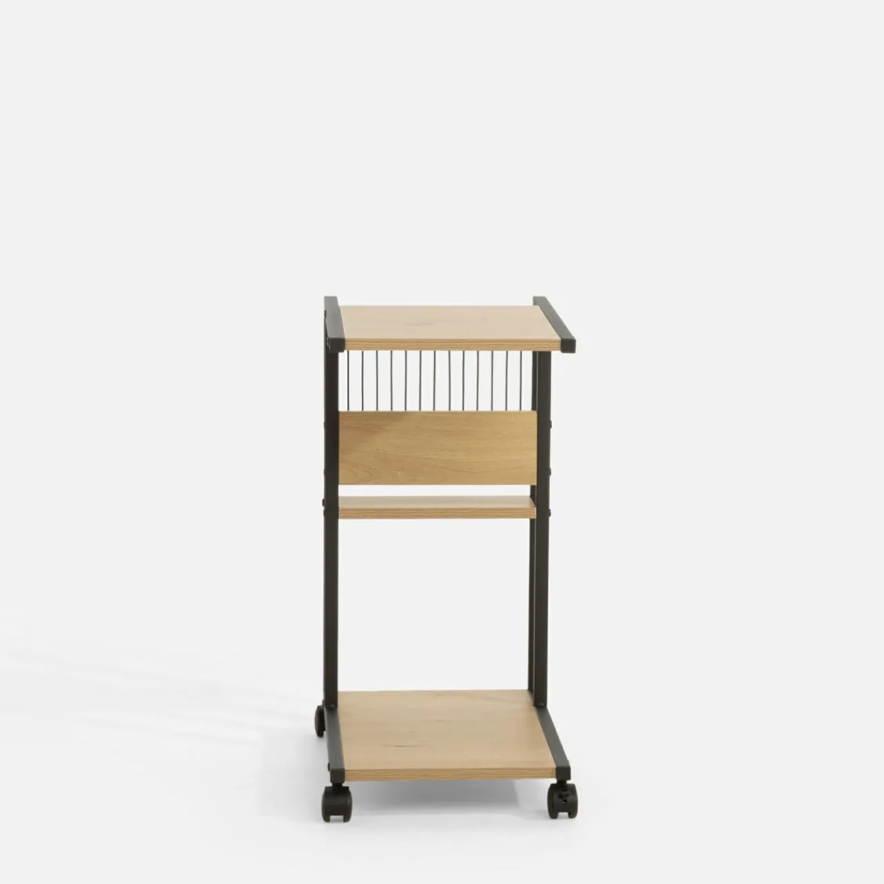 Stolik LAROJA to praktyczne i stylowe rozwiązanie do Twojego domu. Dzięki kółkom, możesz łatwo przesuwać go w dowolne miejsce, co czyni go idealnym zarówno do pracy zdalnej czy relaksu przy książce.